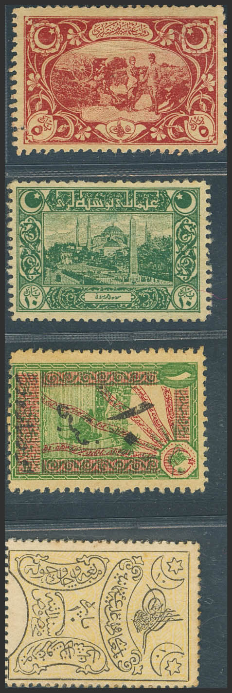 TURKEY-OTTOMAN EMPIRE. Lot of 4 notes of 5 and 10 Para. 1876 and 1917. Ottoman Post. Treasury. (Pick: 116, 117, 118, Unlisted). Almost Uncirculated.