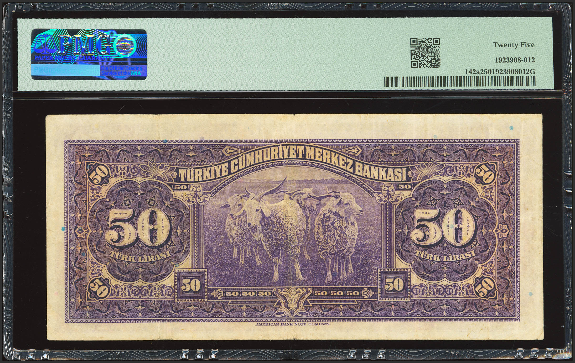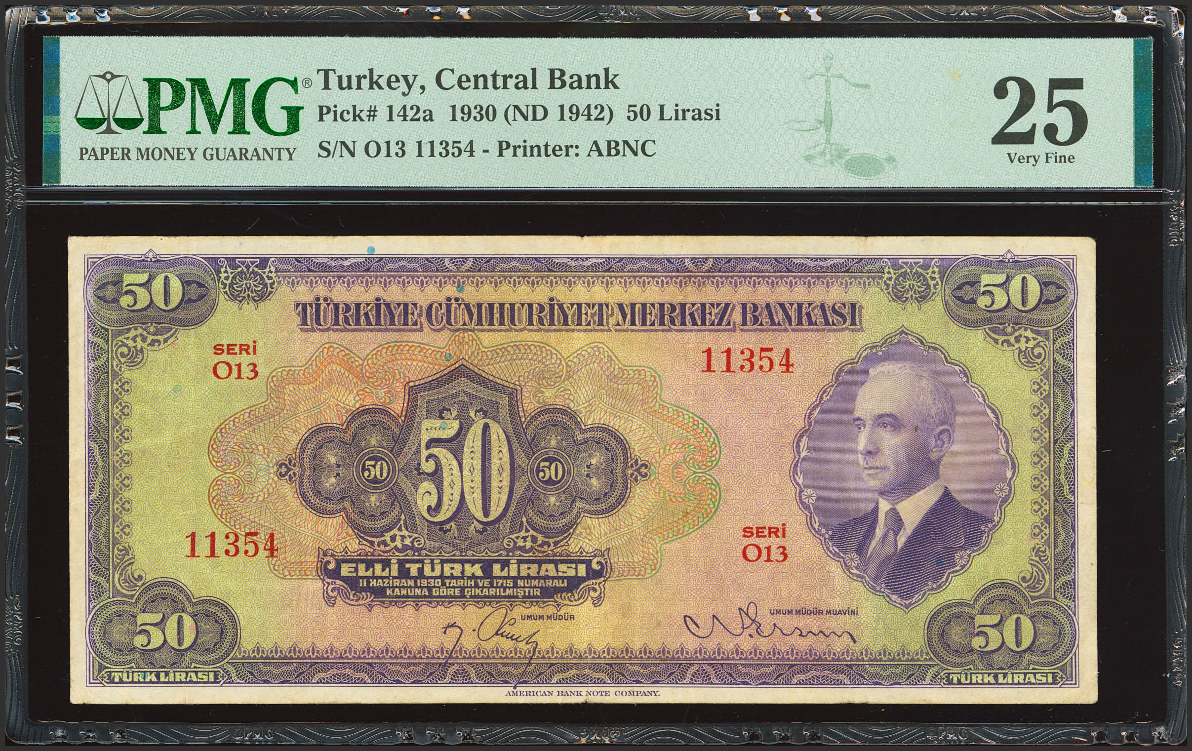TURKEY-REPUBLIC. 50 Lirasi. (1942ca). Central Bank of the Republic. (Pick: 142a). PMG25.