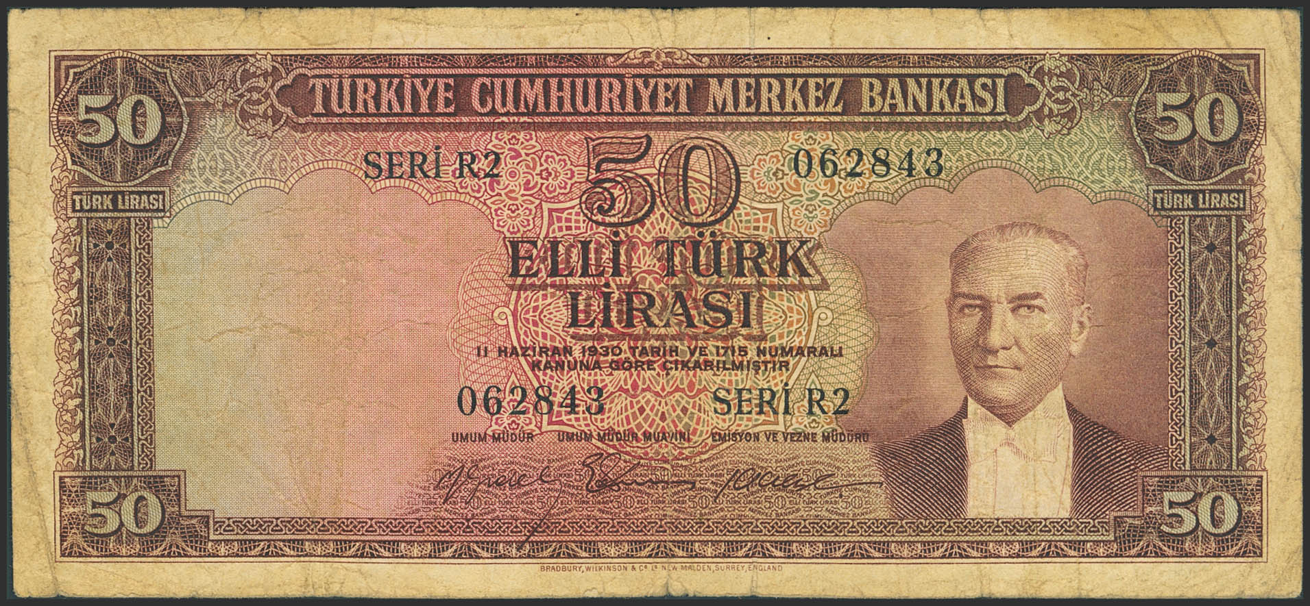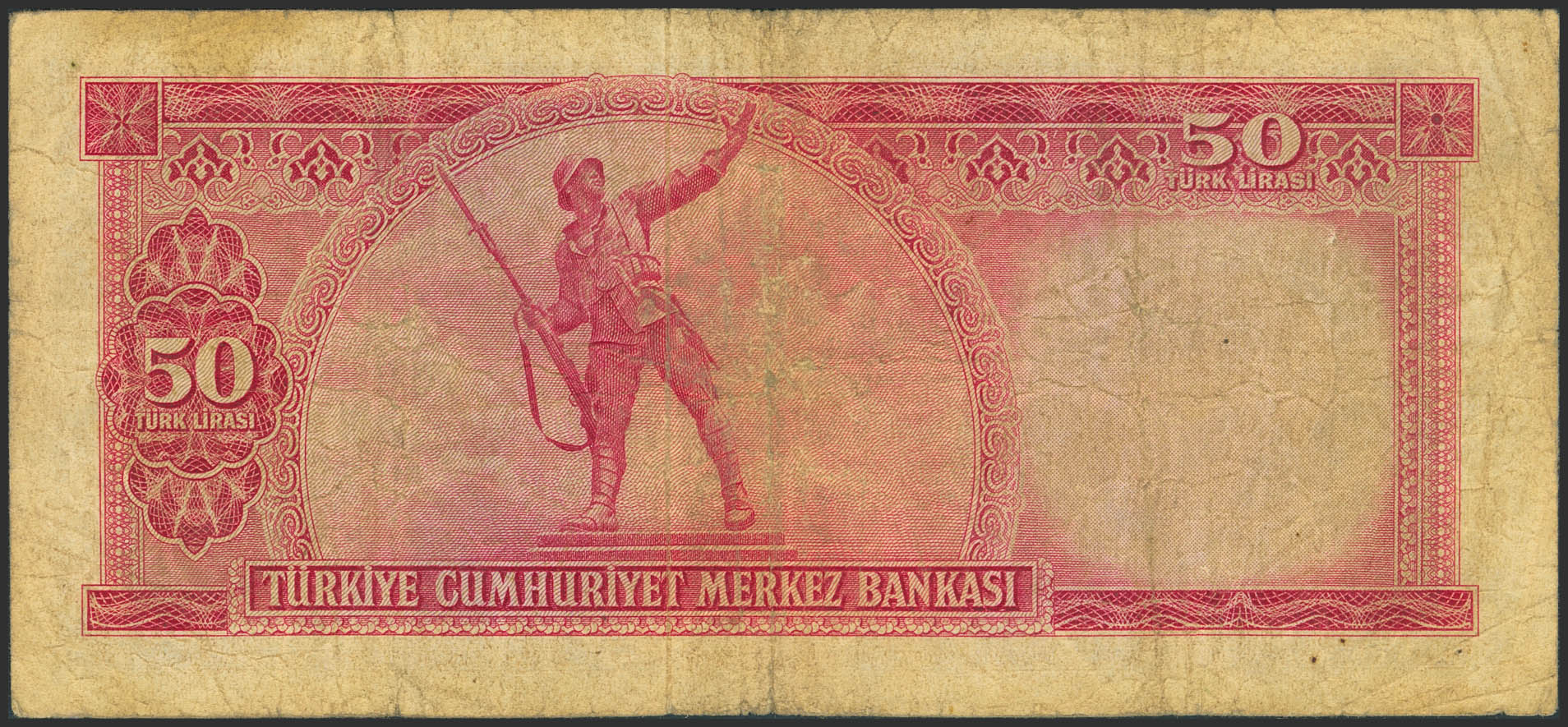 TURKEY-REPUBLIC. 50 Lirasi. (1951ca). Central Bank of the Republic. (Pick: 164a). Fine.