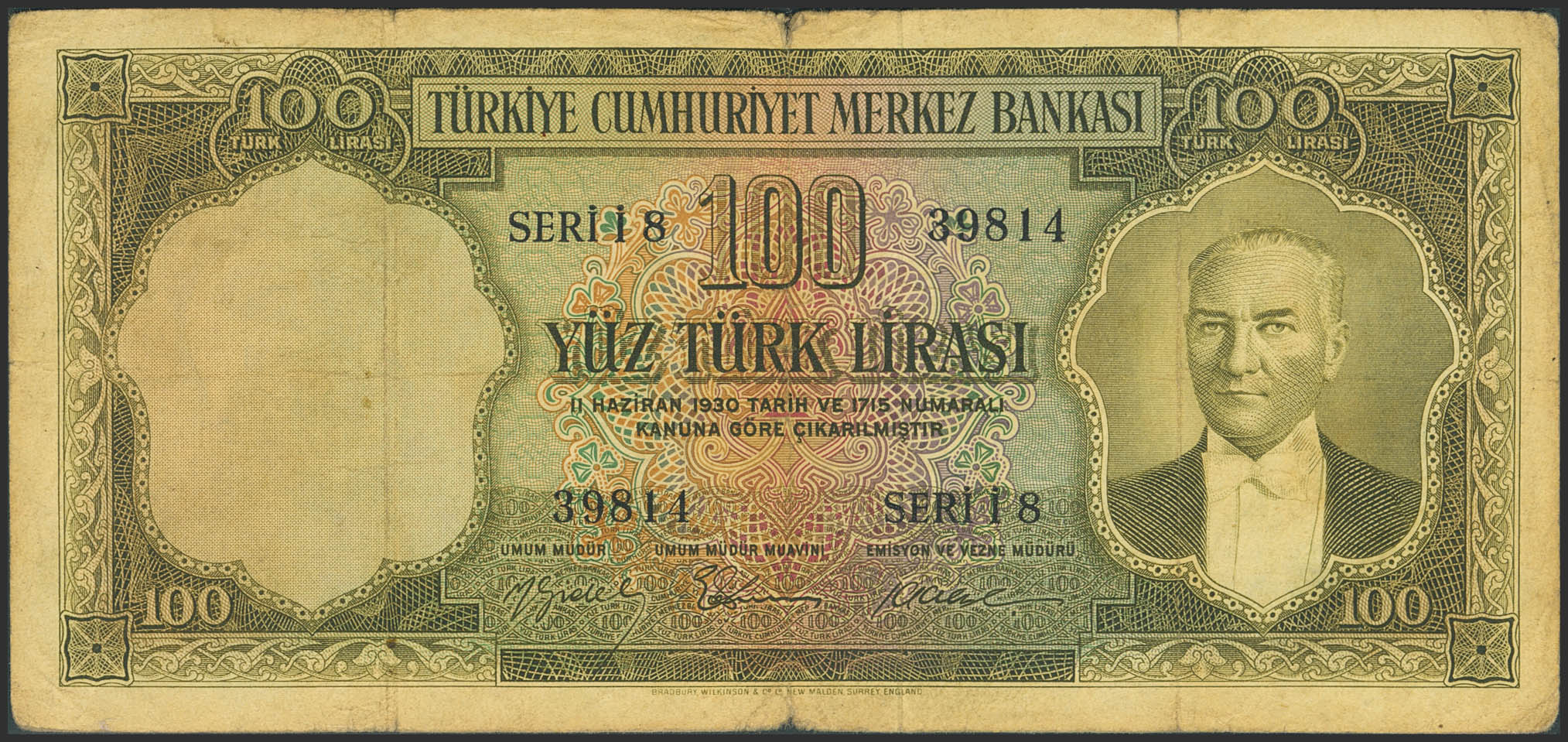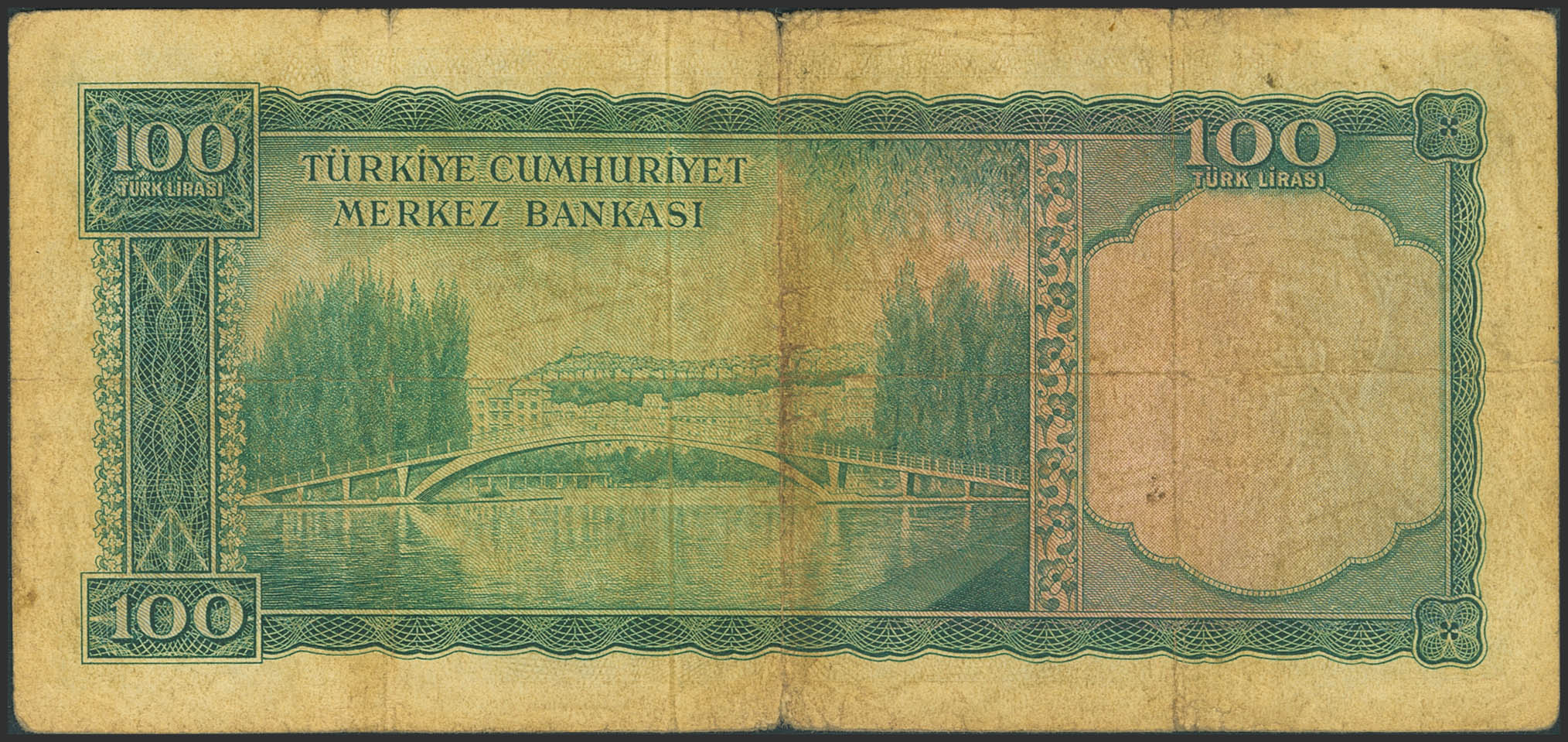 TURKEY-REPUBLIC. 100 Lirasi. (1951ca). Central Bank of the Republic. (Pick: 168a). Tears. More than Fine.