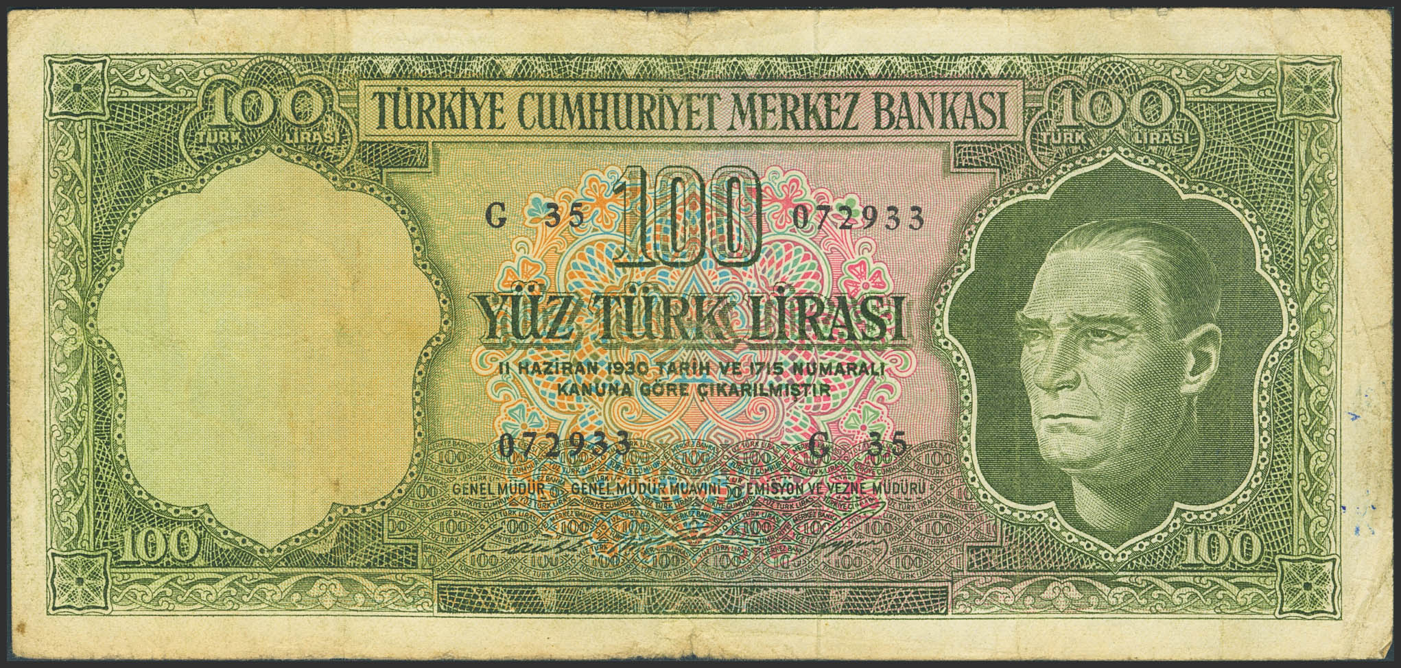 TURKEY-REPUBLIC. 100 Lirasi. (1966ca). Central Bank of the Republic. (Pick: 182c). More than Fine.