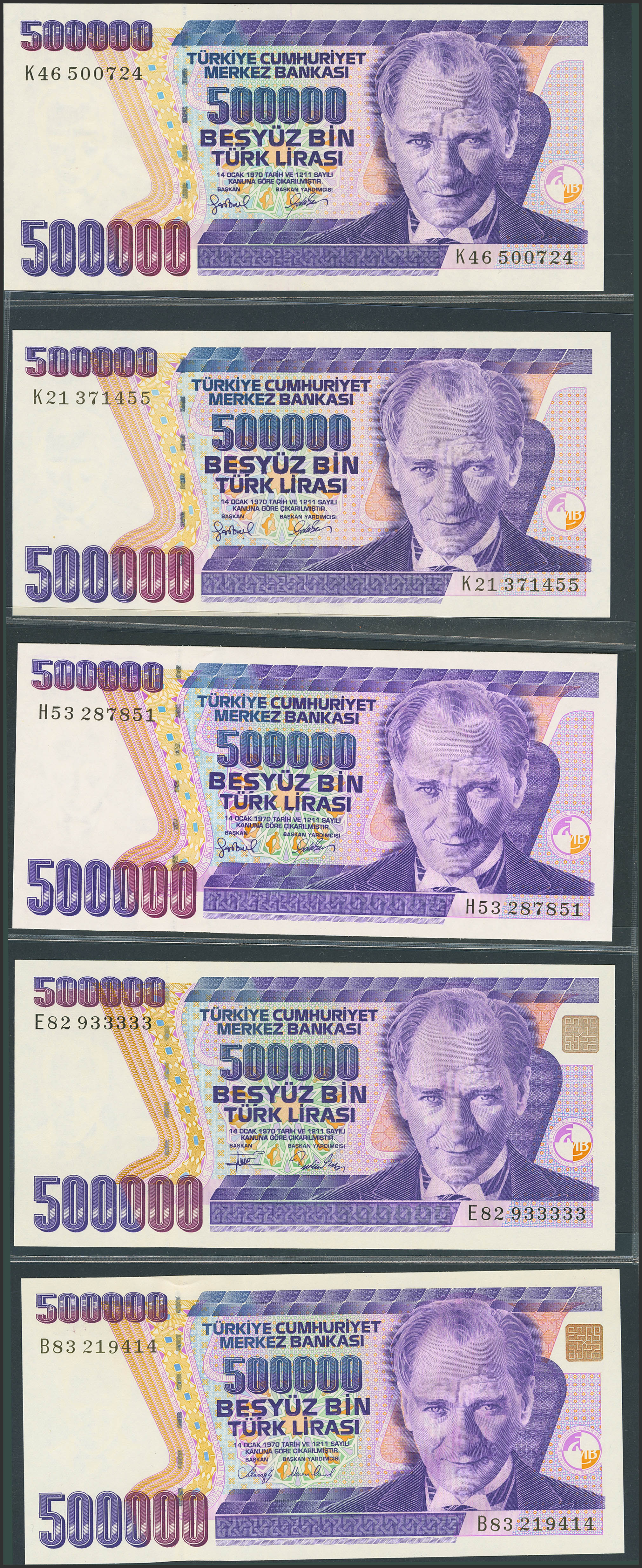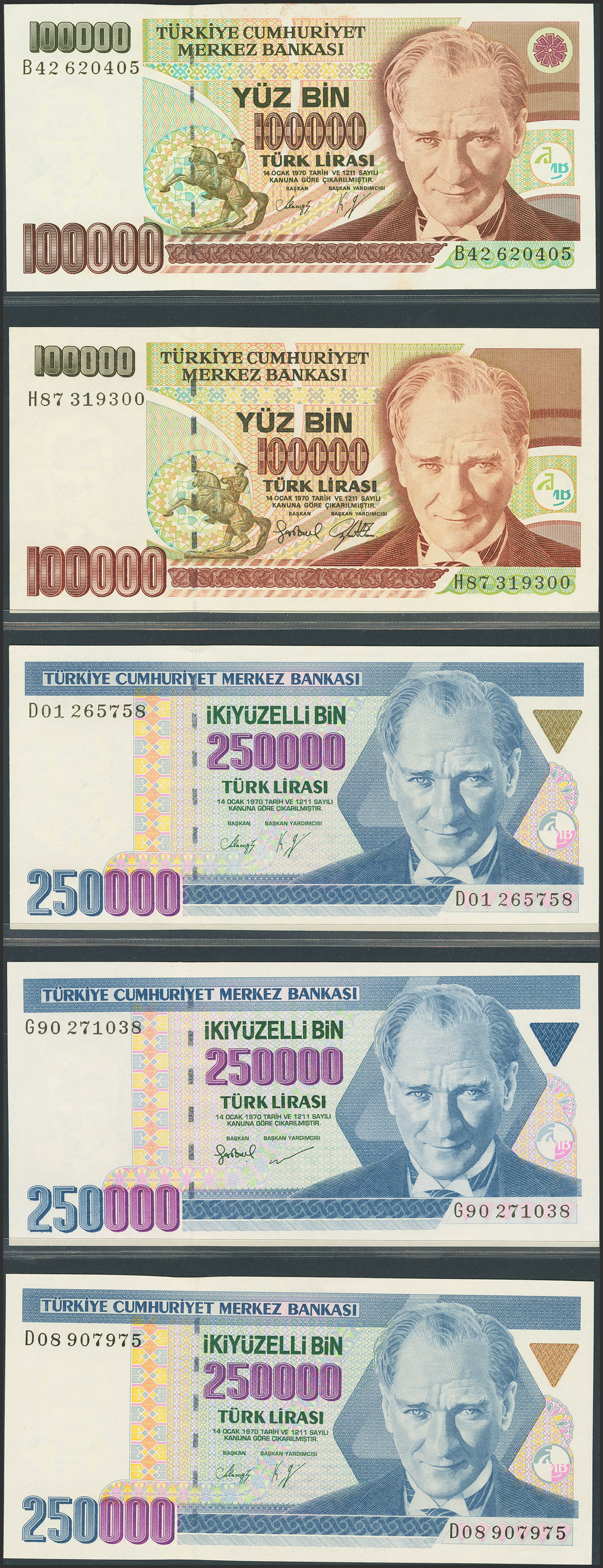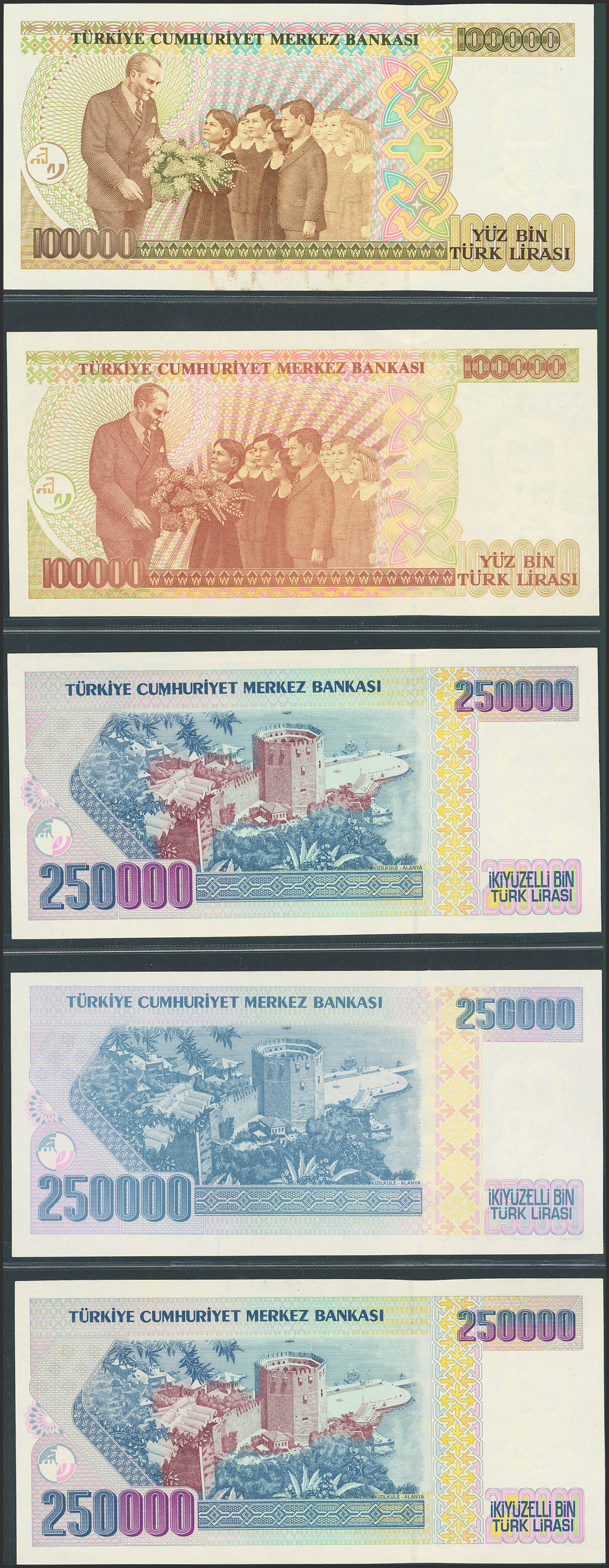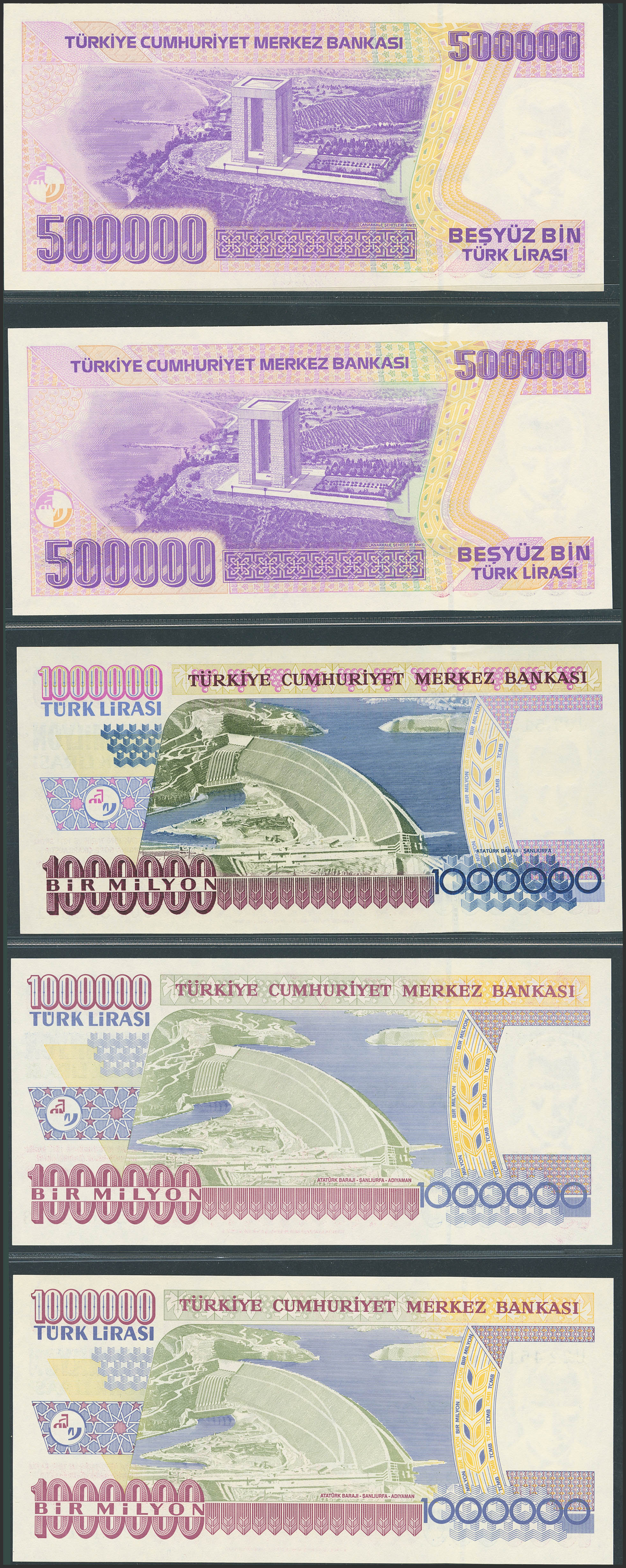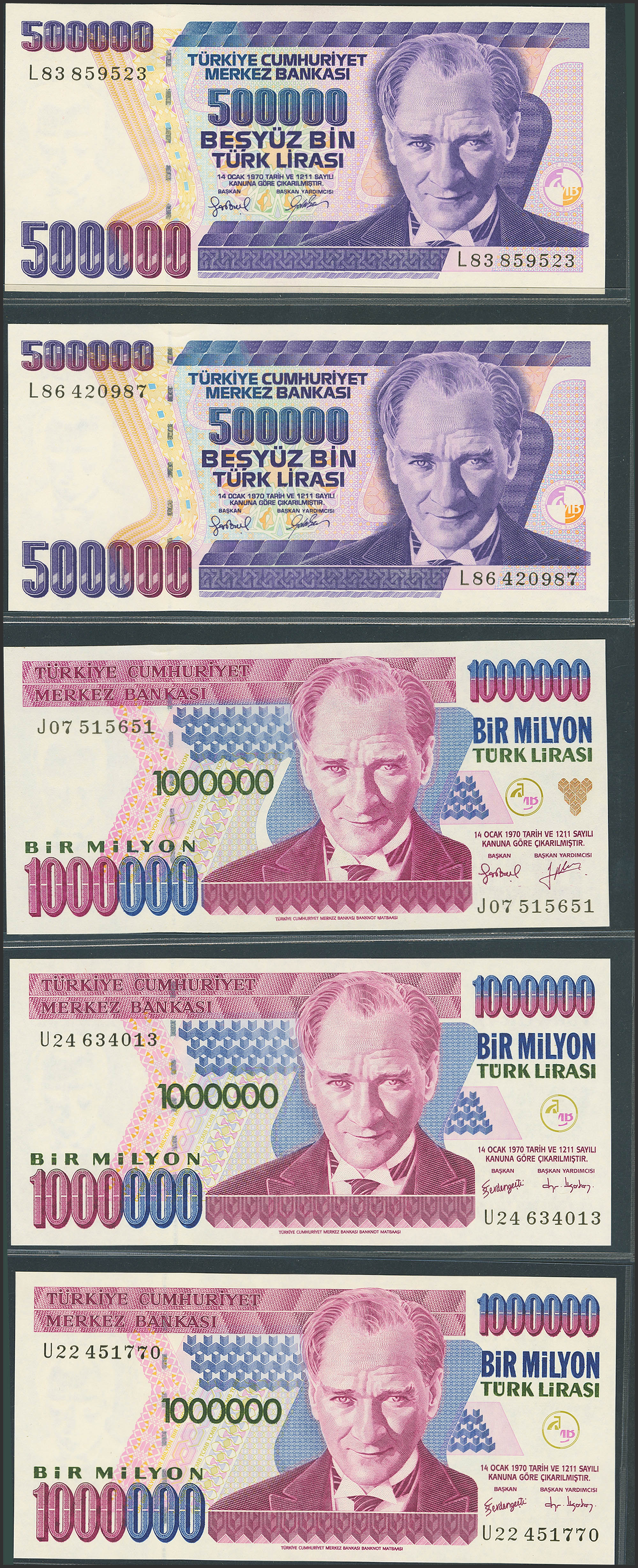 TURKEY-REPUBLIC. Lot of 15 notes from 100000 at 1000000 Lirasi. (1984ca). Central Bank of the Republic. (Pick: 205a, 206, 207(2), 208a , 209, 208c, 211, 212(5), 2013(2)). Almost Uncirculated (3), Less than Uncirculated (1) and Uncirculated (11).