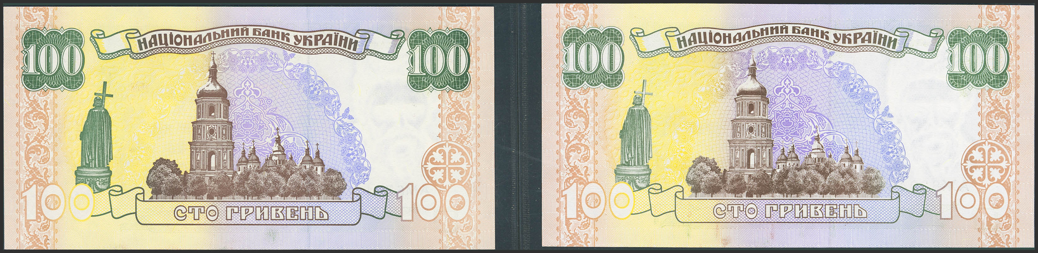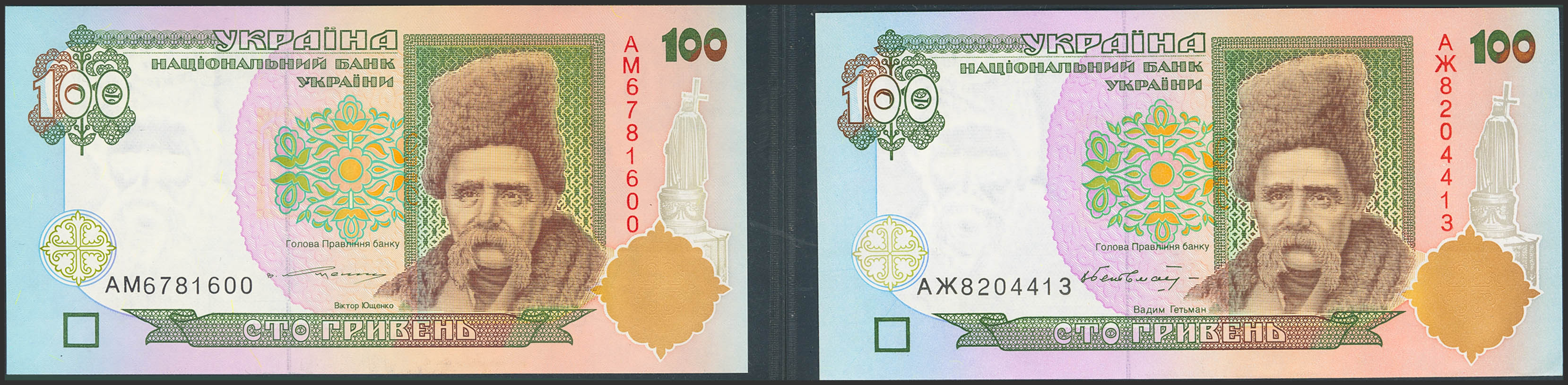 UKRAINE. Lot of 2 notes of 100 Hriven. (1996ca). National Bank. (Pick: 114a, 114b). Uncirculated.