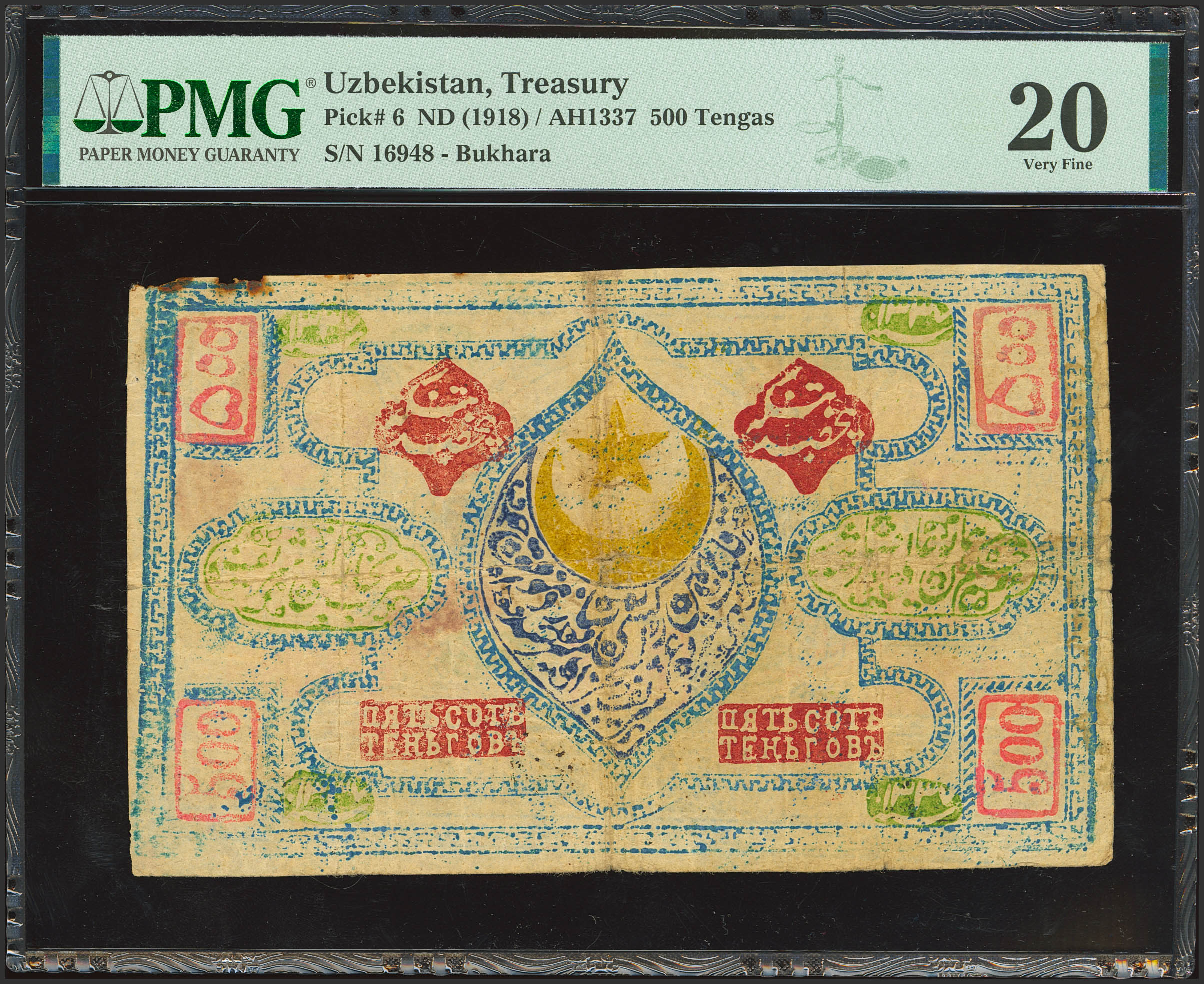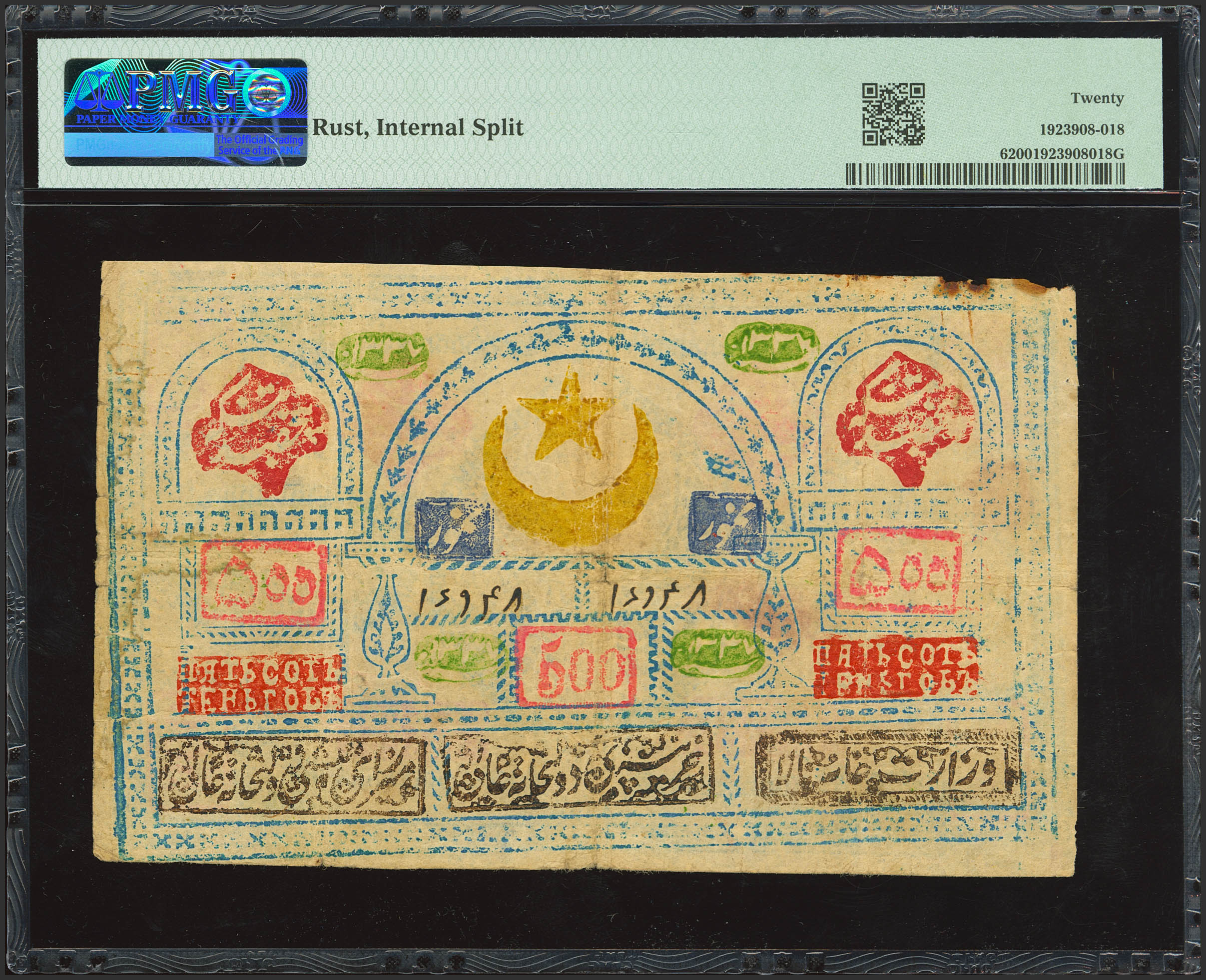 UZBEKISTAN. 500 Tengas. 1918. Treasury. Bukhara Emirate. (Pick: 6). PMG20 (rust, internal split).