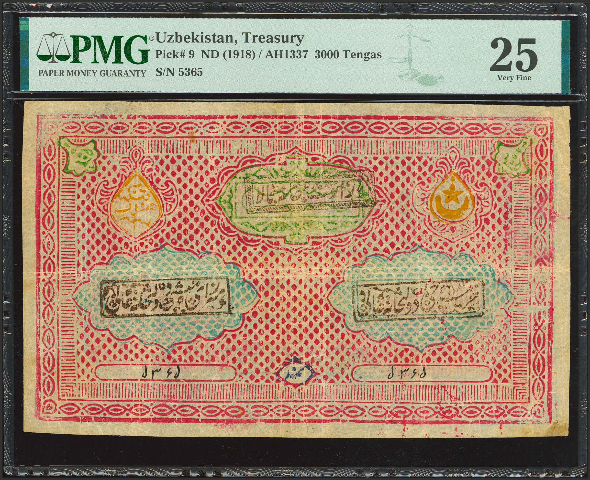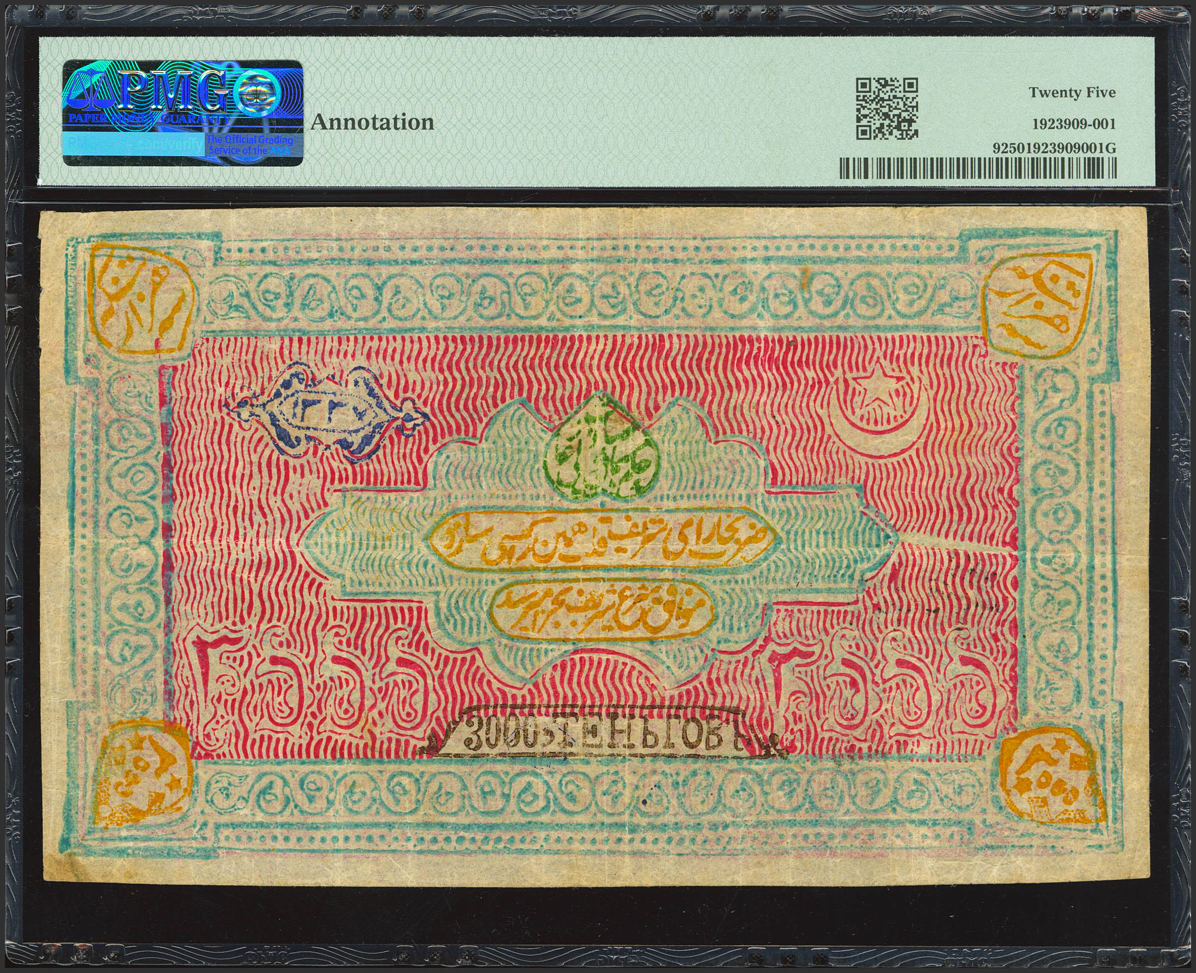 UZBEKISTAN. 3000 Tengas. 1918. Treasury. Bukhara Emirate. (Pick: 9). PMG25 (annotations).