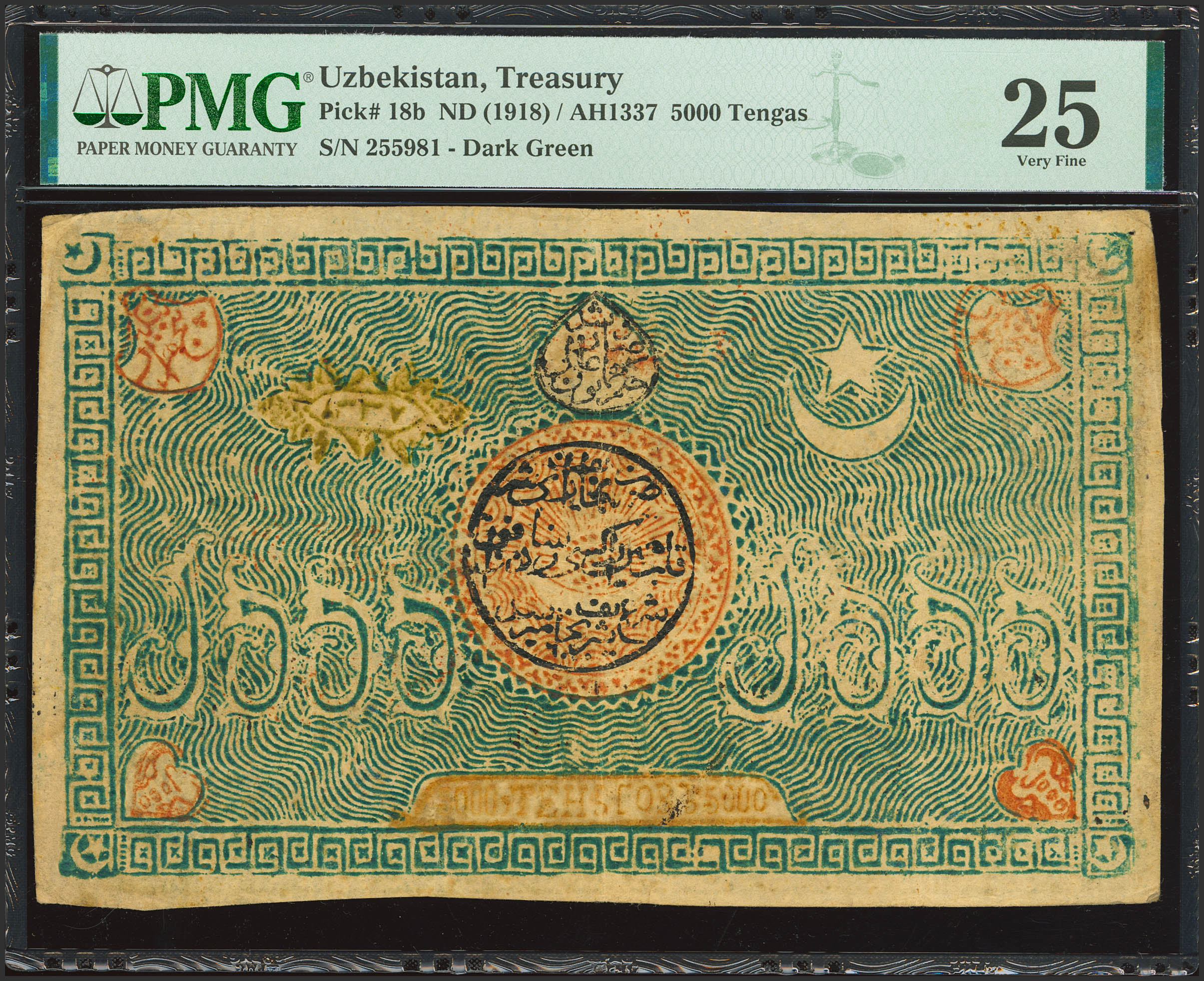 UZBEKISTAN. 5000 Tengas. 1918. Treasury. Bukhara Emirate. (Pick: 18b). PMG25.