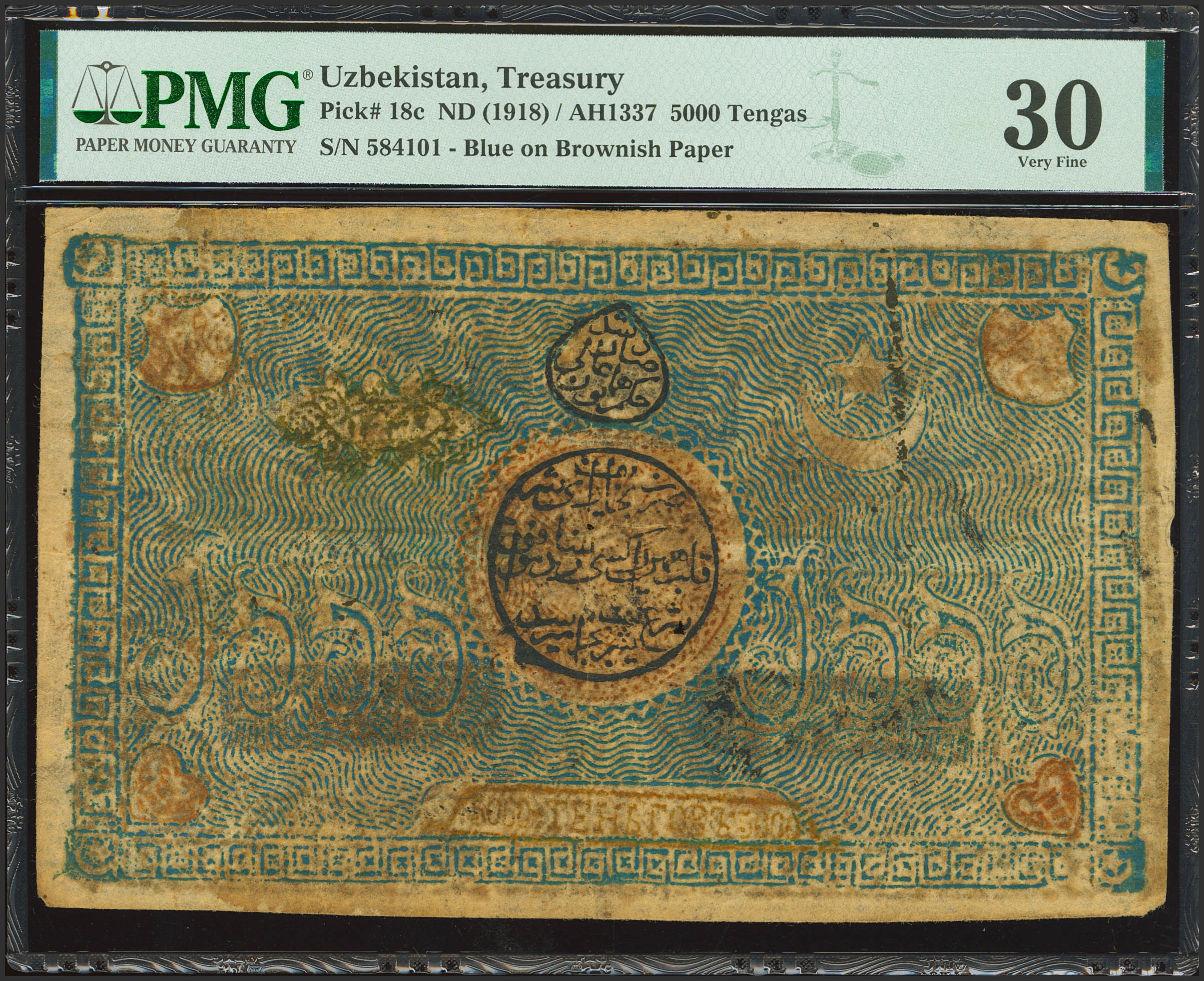 UZBEKISTAN. 5000 Tengas. 1918. Treasury. Bukhara Emirate. (Pick: 18c). PMG30 (holes).