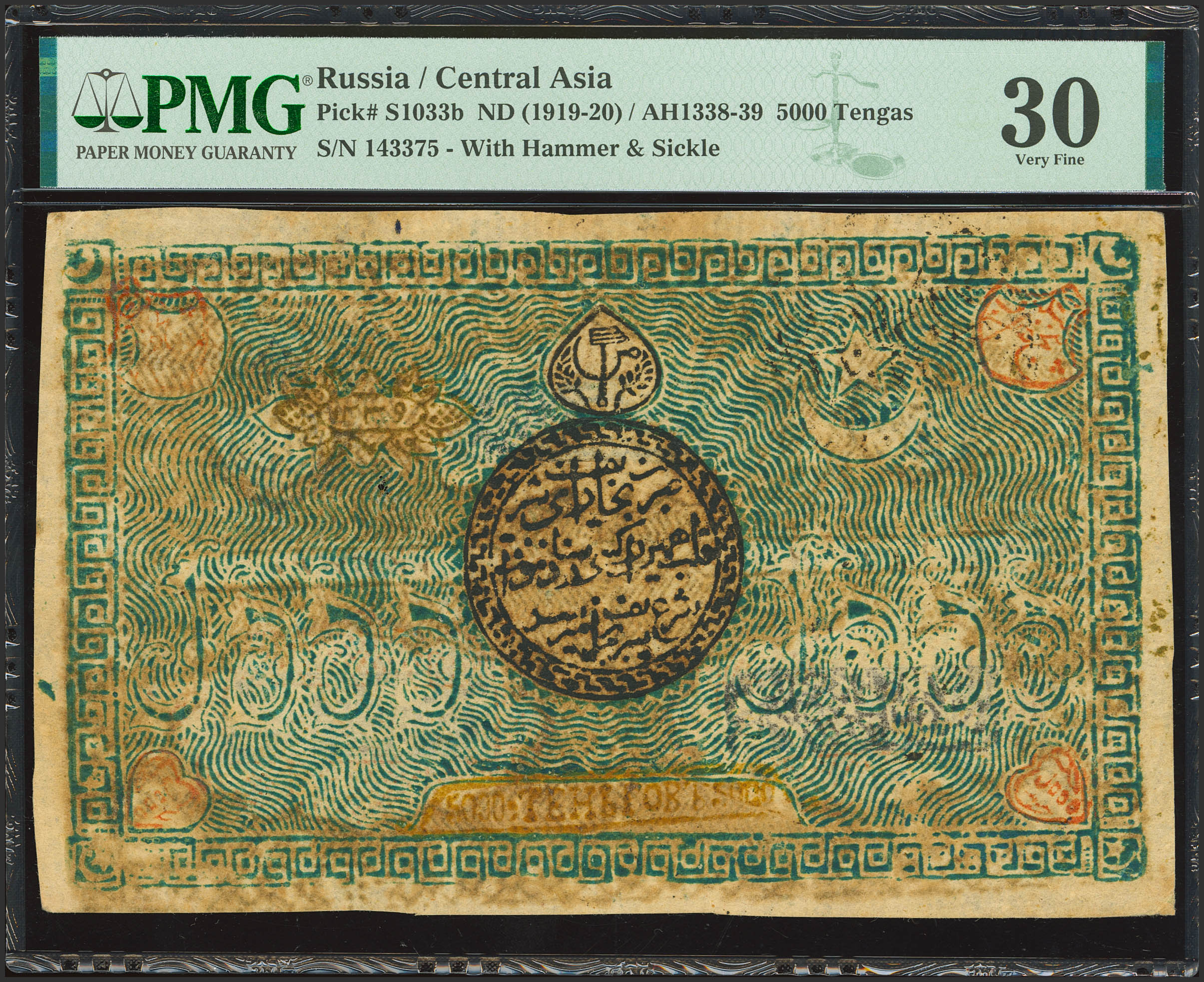 UZBEKISTAN. 5000 Tengov. 1920. Treasury. Bukhara Peoples Republic. (Pick: S1033). PMG30 (rust, hole).