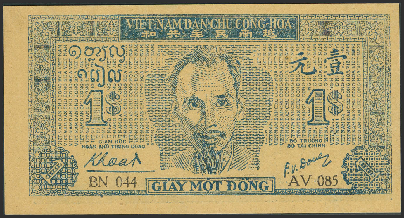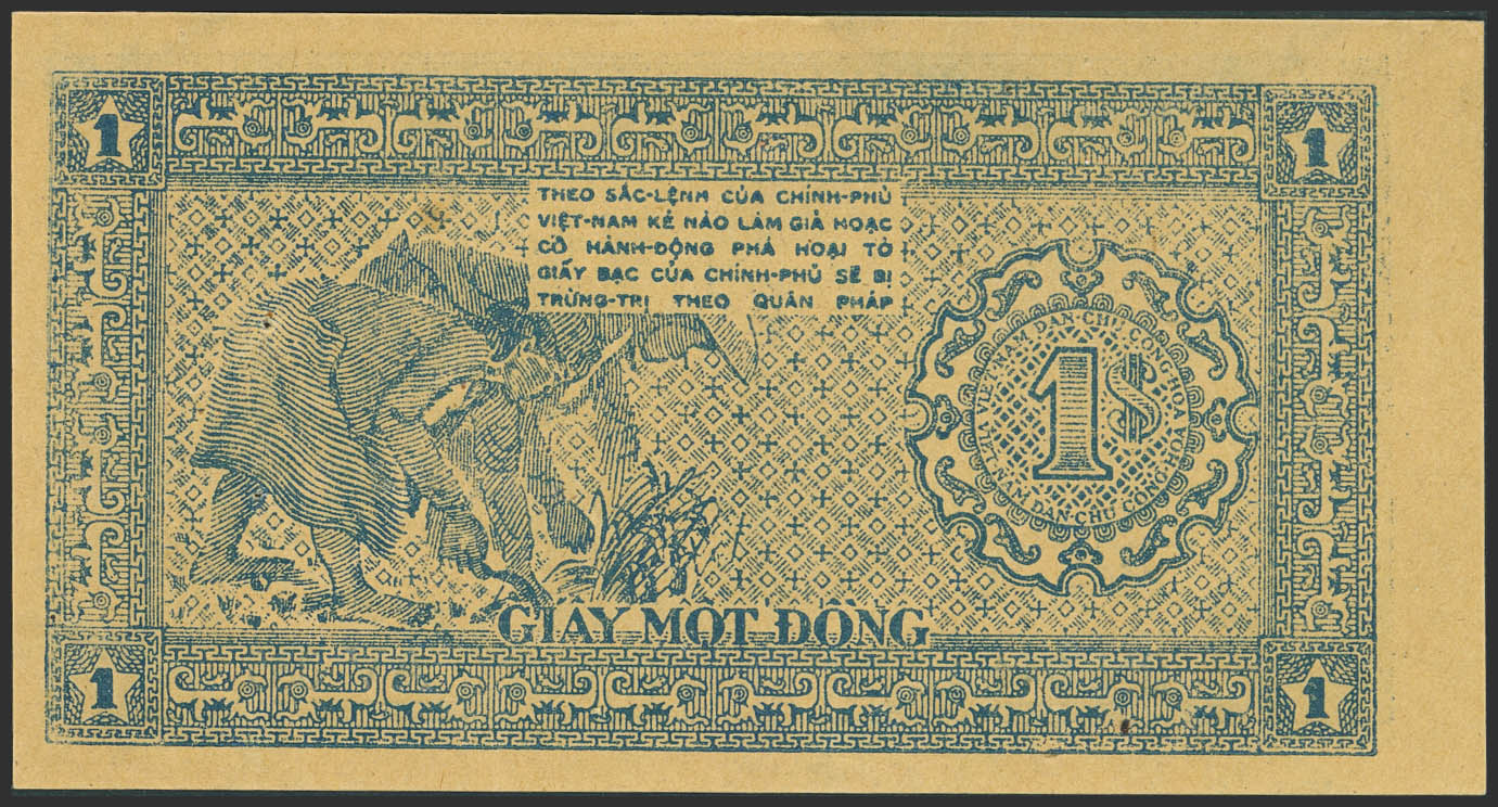 VIETNAM. 1 Dong. (1947ca). Democratic Republic of Vietnam. (Pick: 9d). More than Extremely Fine, staple holes.