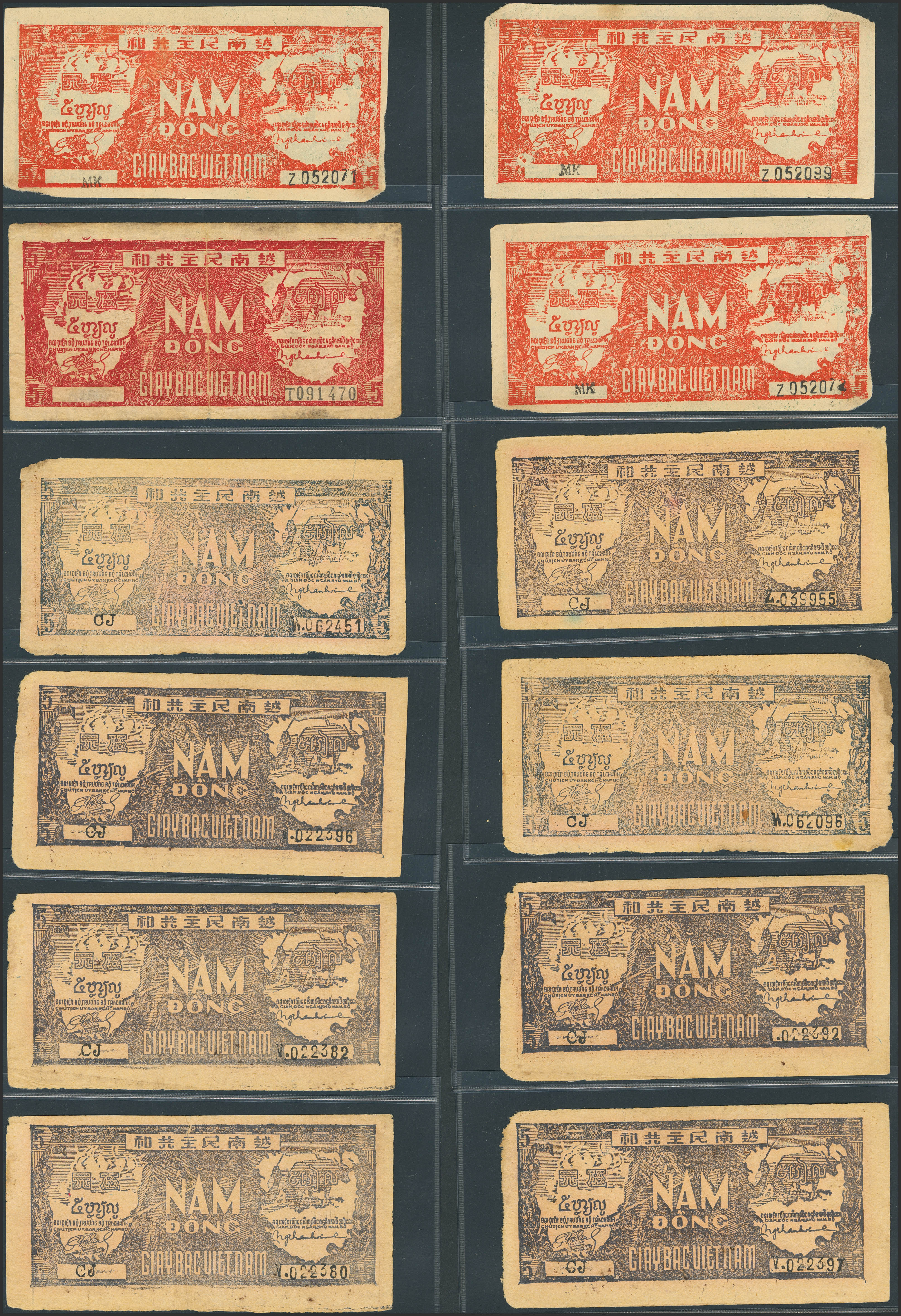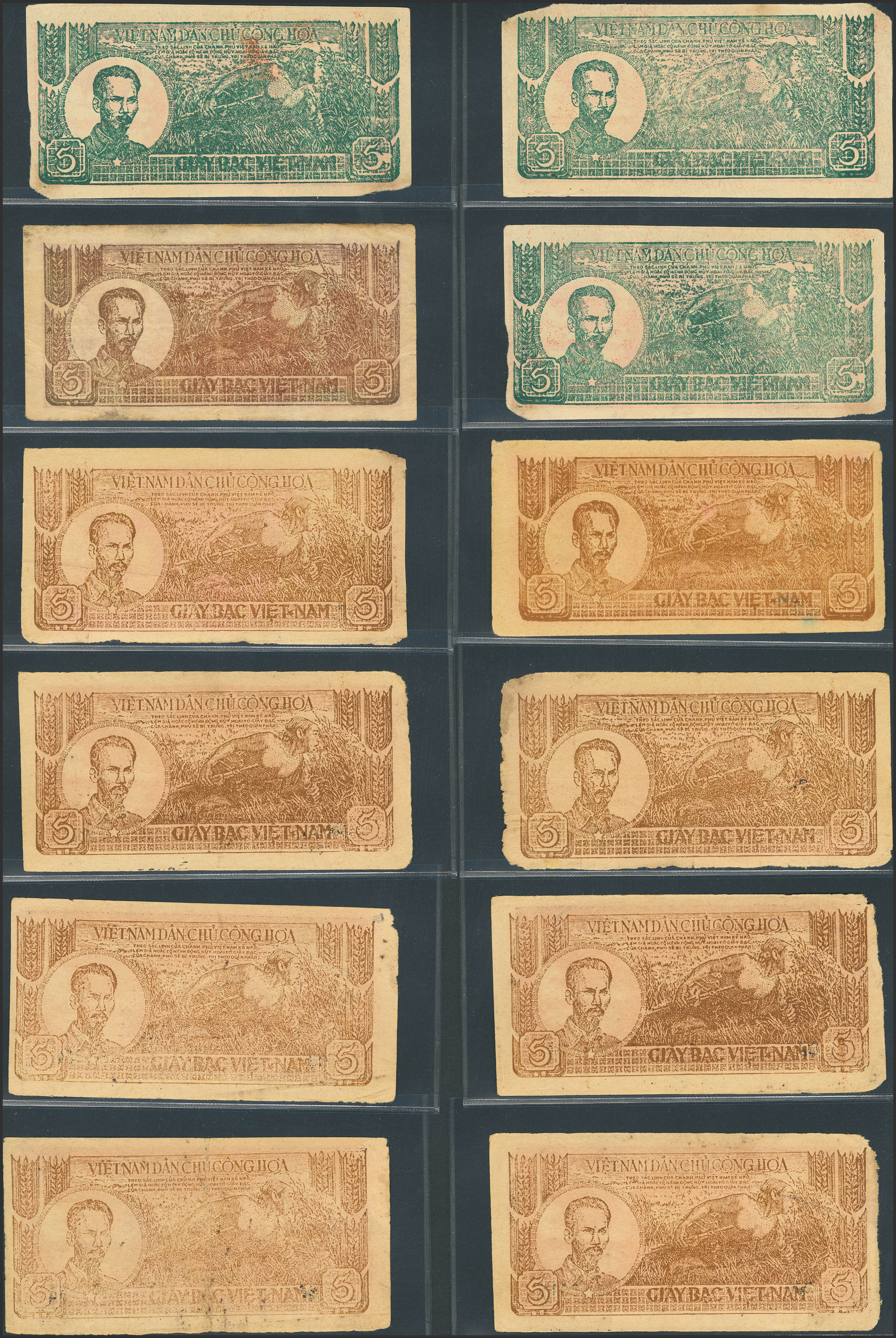 VIETNAM. Lot of 12 notes of 5 Dong. (1948ca). Democratic Republic of Vietnam. Mixed varieties. (Pick: 10a). Mixed Condition.