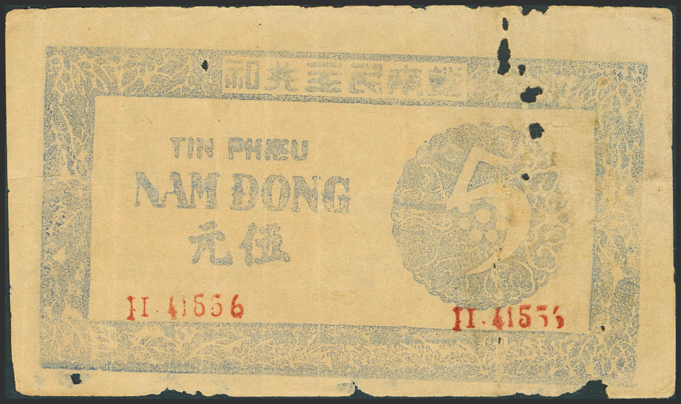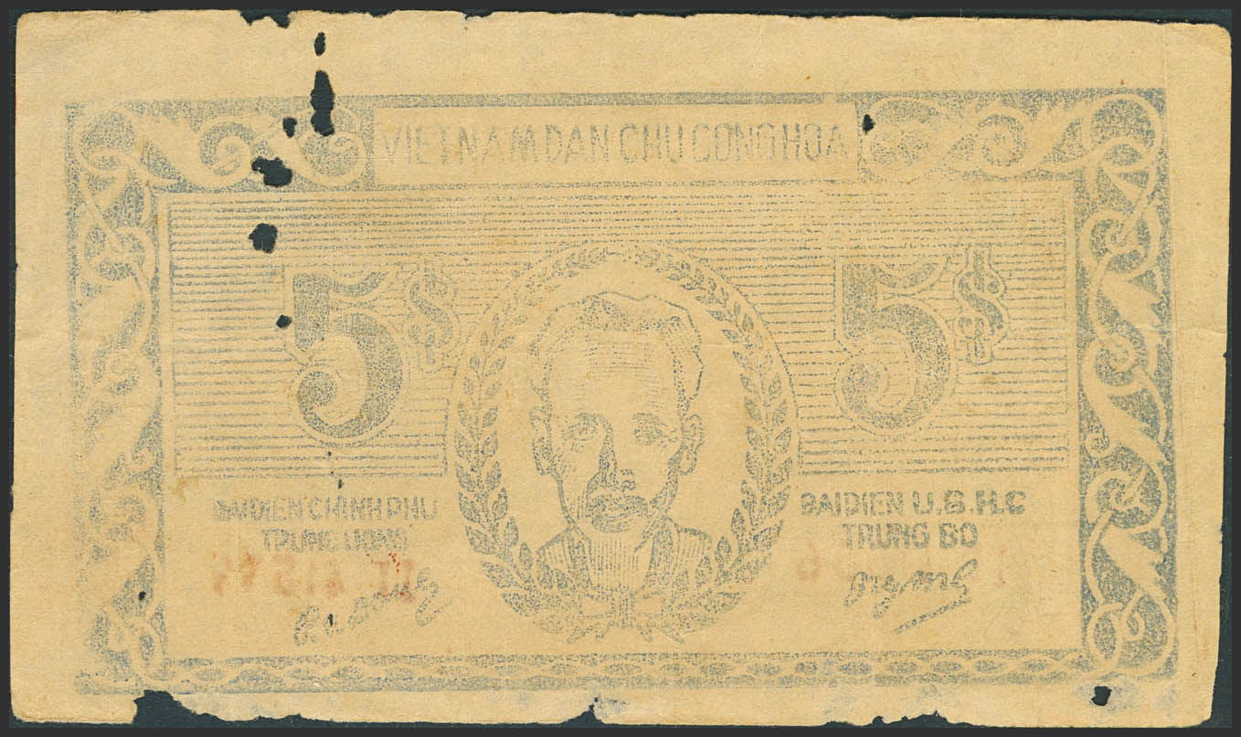 VIETNAM. 5 Dong. (1949ca). Democratic Republic of Vietnam. Credit Note. (Pick: 46d). More than Very good, wormhole, nick.