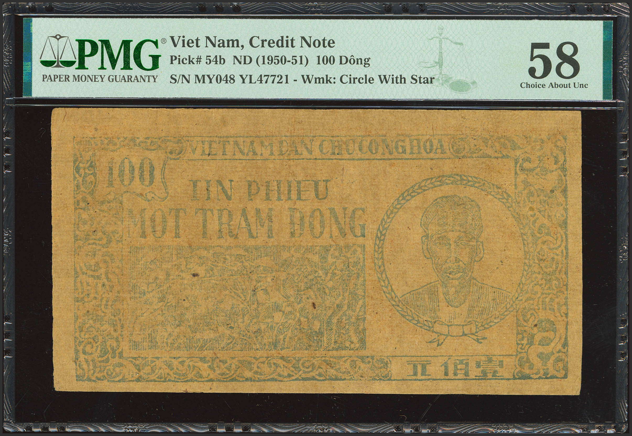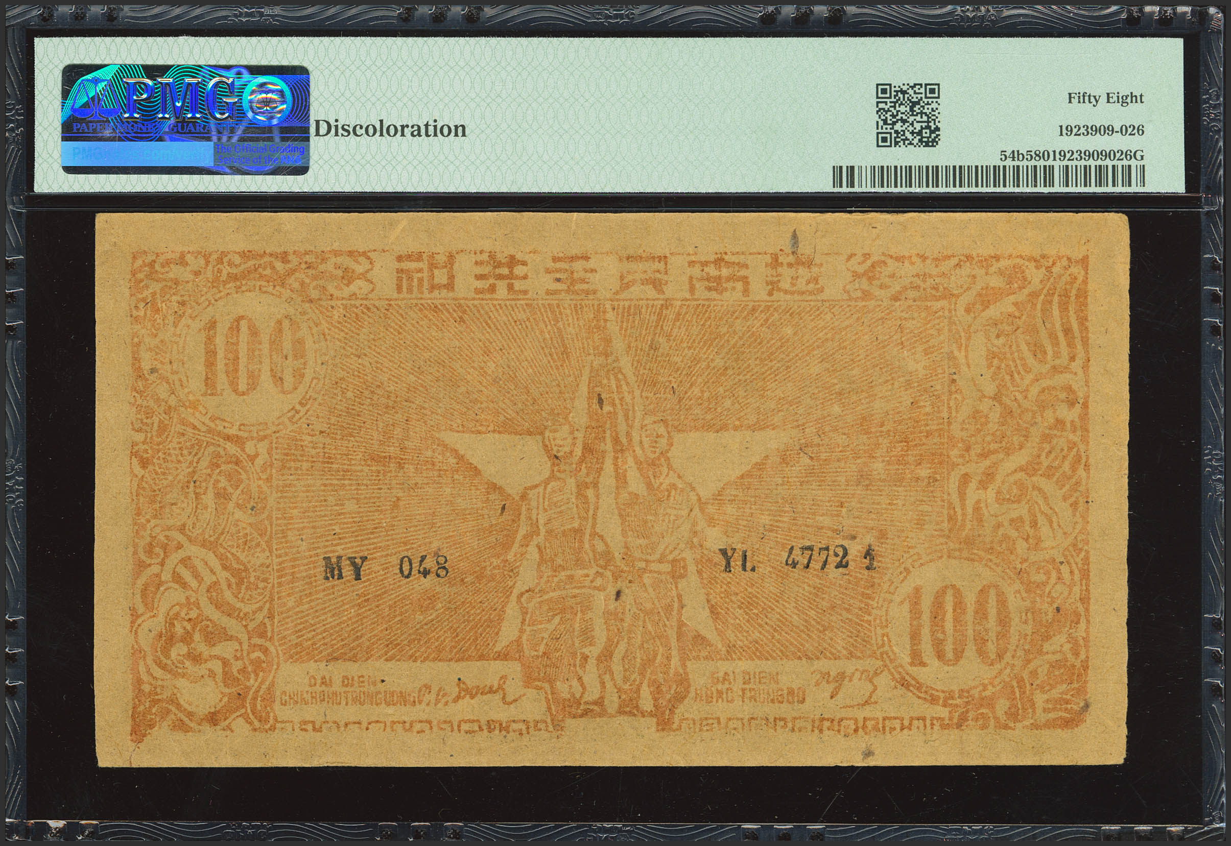 VIETNAM. 100 Dong. (1950ca). Democratic Republic of Vietnam. Thick Paper with watermark. Credit note. (Pick: 54b). PMG58 (discoloration).