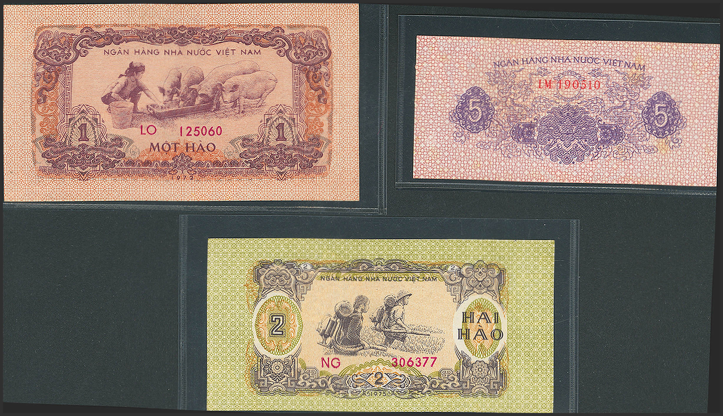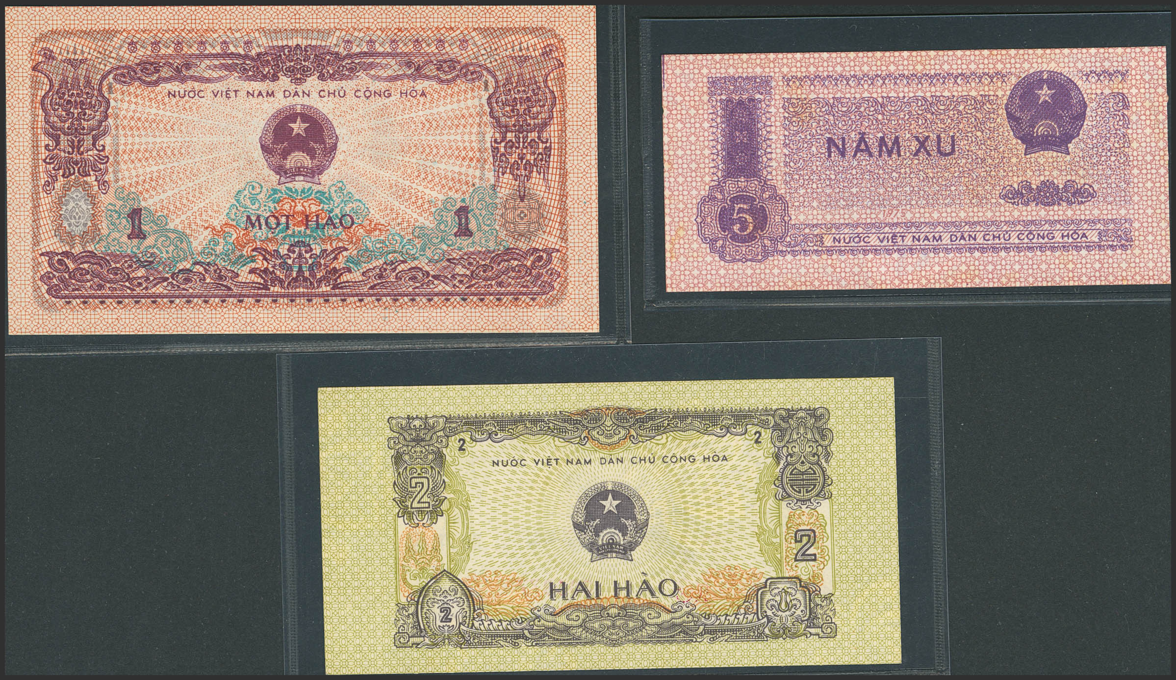 VIETNAM. Lot of 3 notes from 5 Xu-2 Hao. 1975. State Bank. (Pick: 76b, 77c, 78a). Uncirculated.