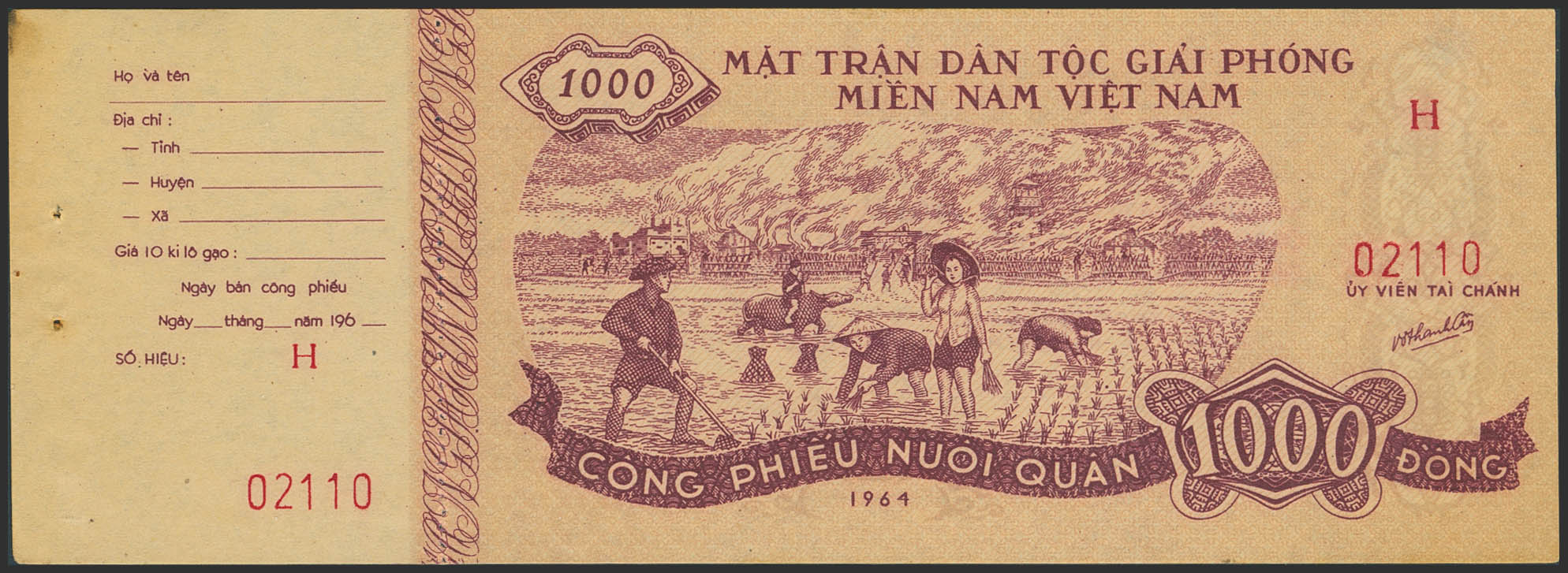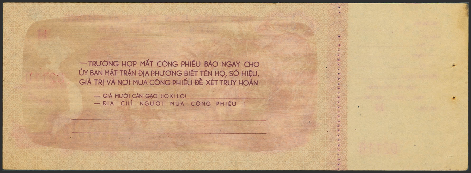 VIETNAM. 1000 Dong. 1964. Military Ration Coupon. Viet Cong. (Pick: Unlisted). Uncirculated.