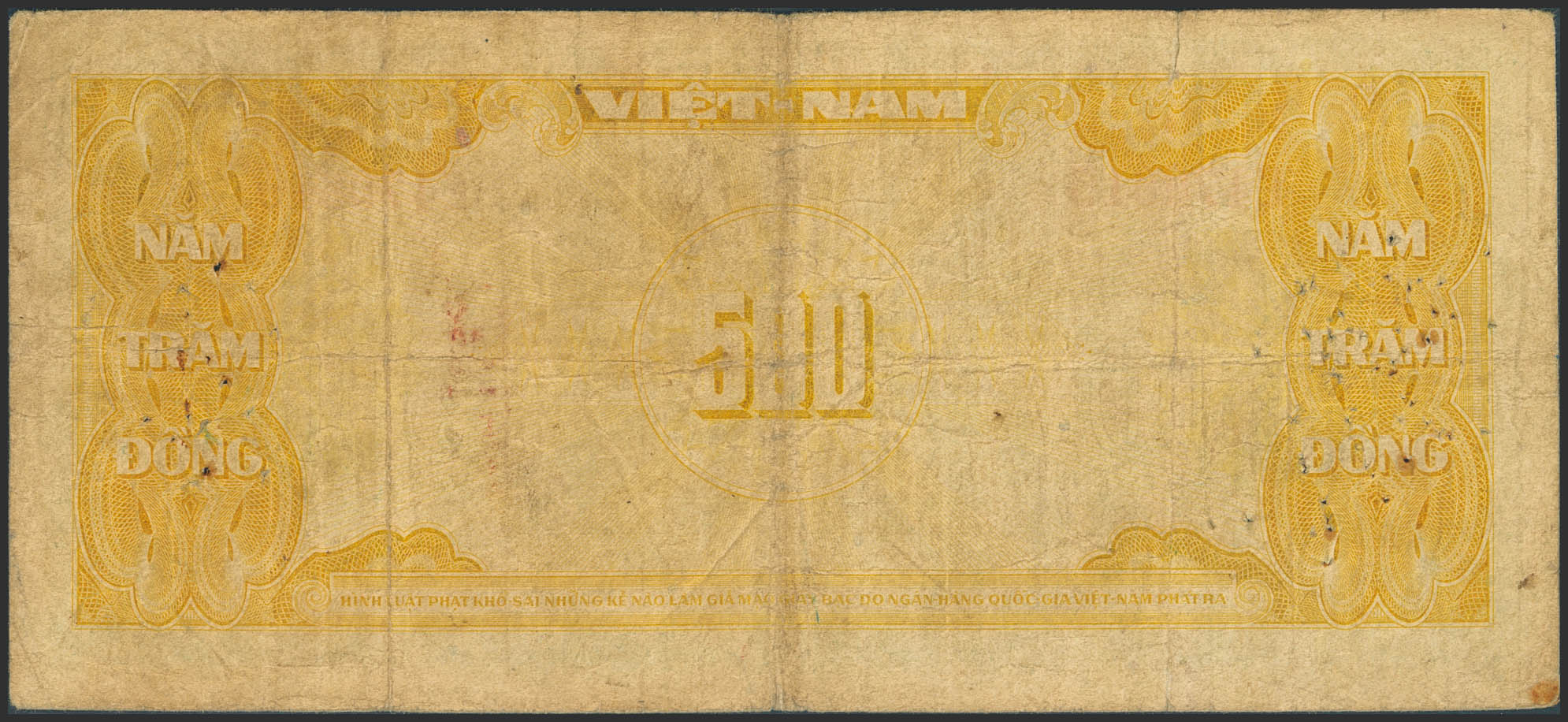 VIETNAM SOUTH. 500 Dong. (1955ca). National Bank. (Pick: 10a). Fine, multiple pinholes.