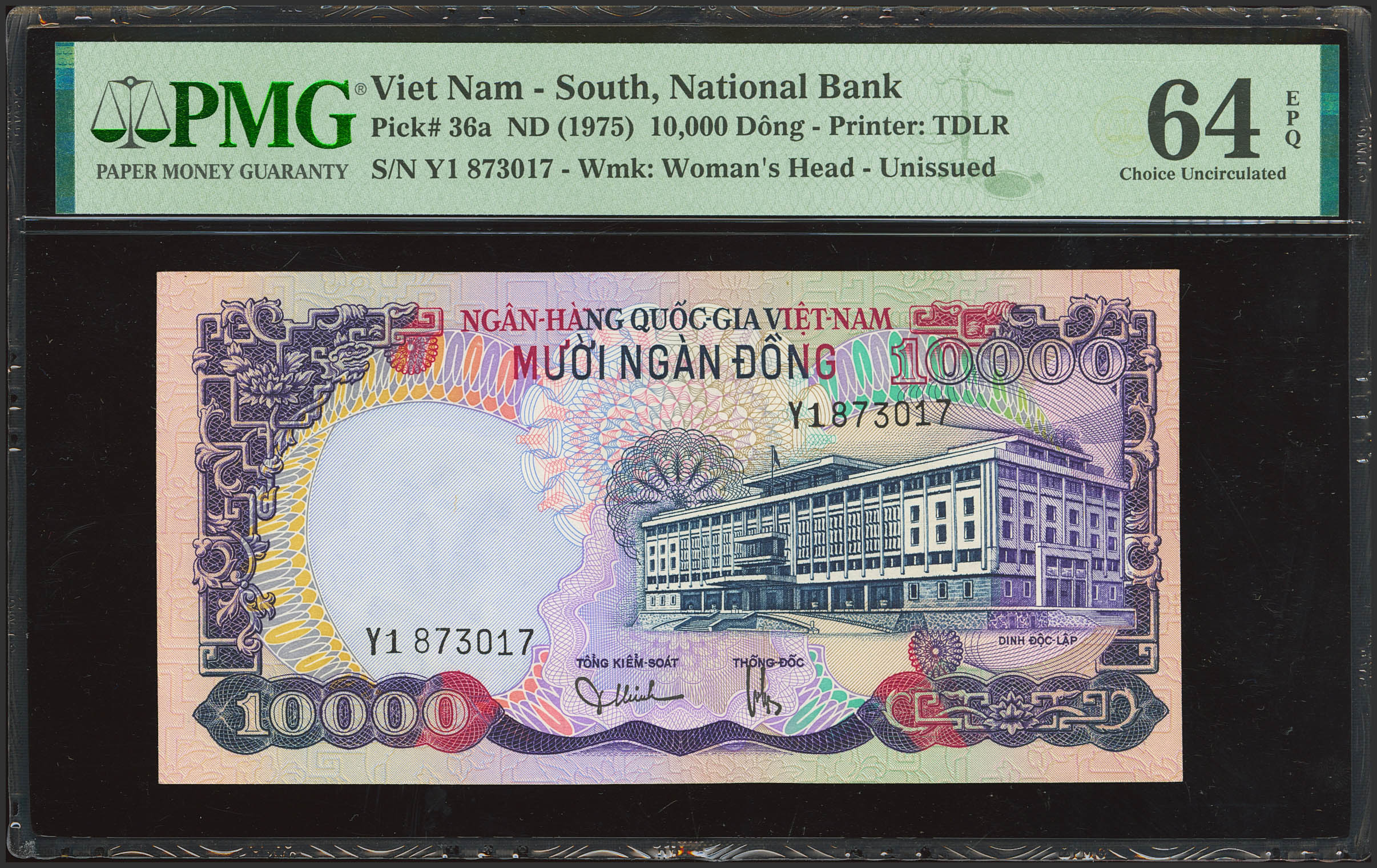 VIETNAM SOUTH. 10000 Dong. (1975ca). National Bank. Not issued as the country ceased to exist. (Pick: 36a). PMG64EPQ.