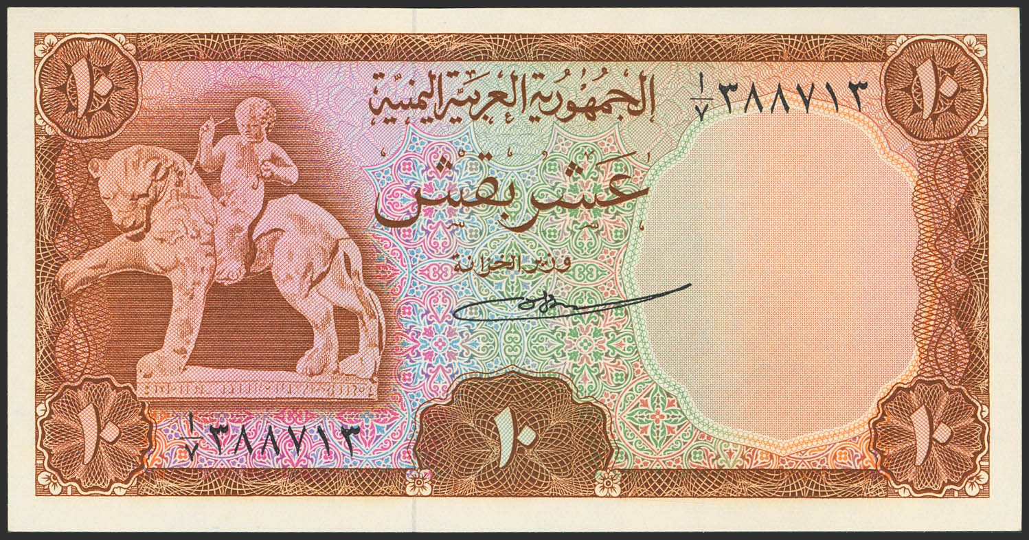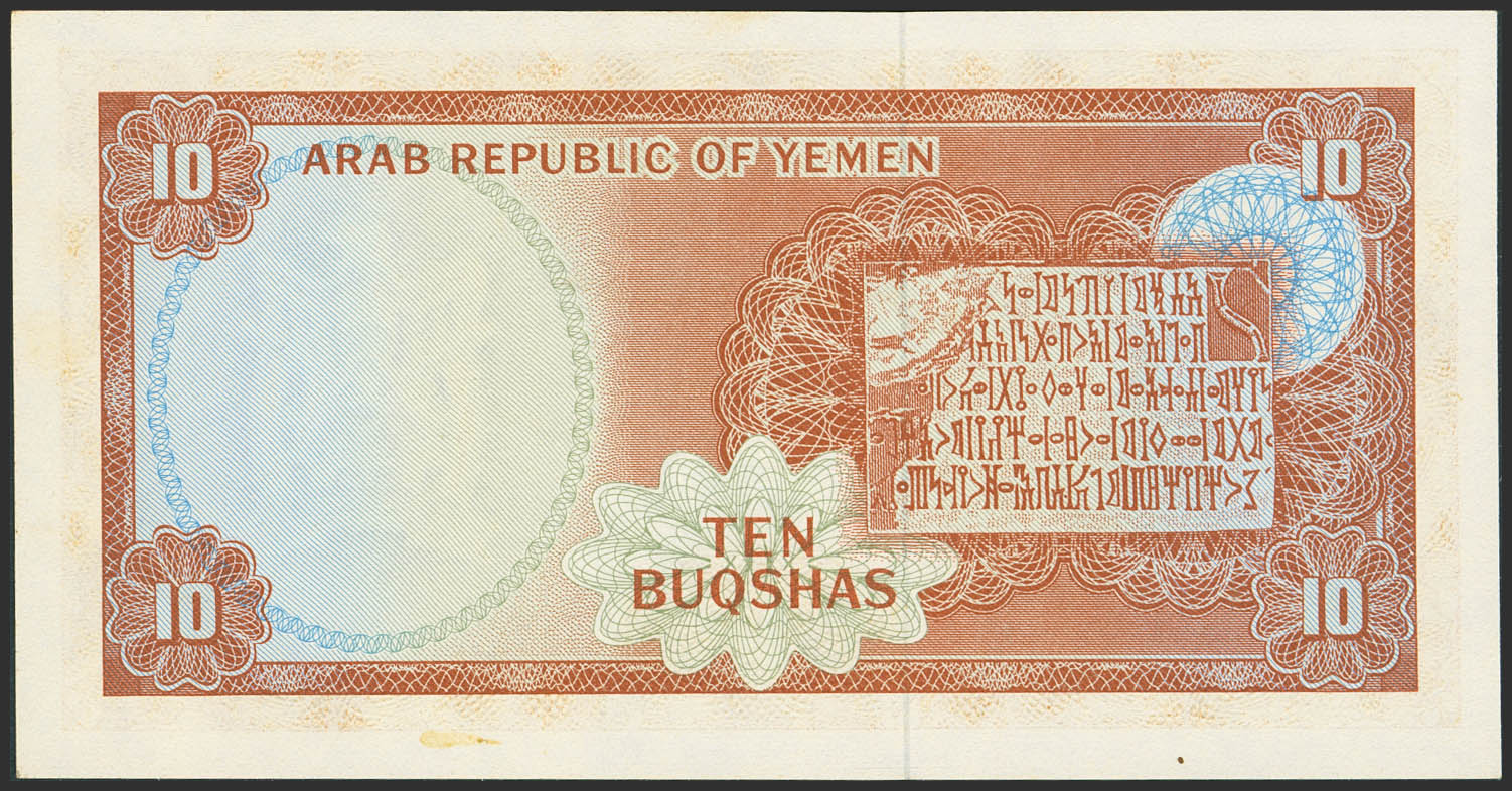 YEMEN ARAB REPUBLIC. 10 Buqshas. (1966ca). Currency Board. (Pick: 4). Uncirculated.