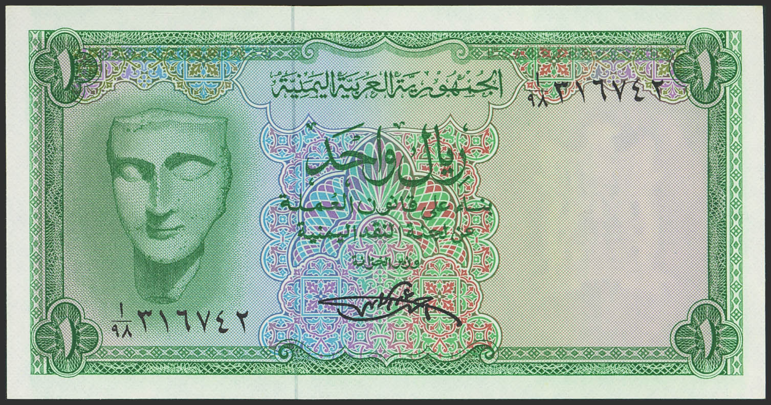 YEMEN ARAB REPUBLIC. 1 Rial. (1969ca). Currency Board. (Pick: 6a). Uncirculated.