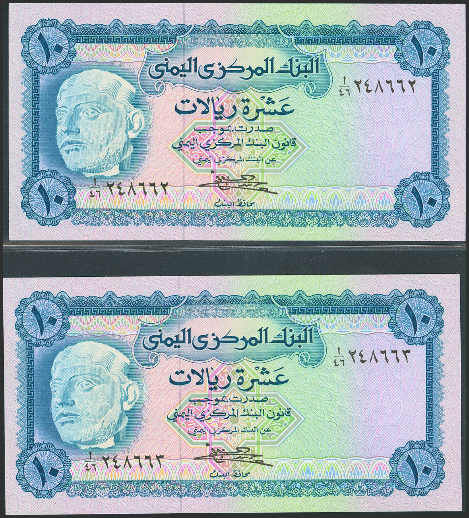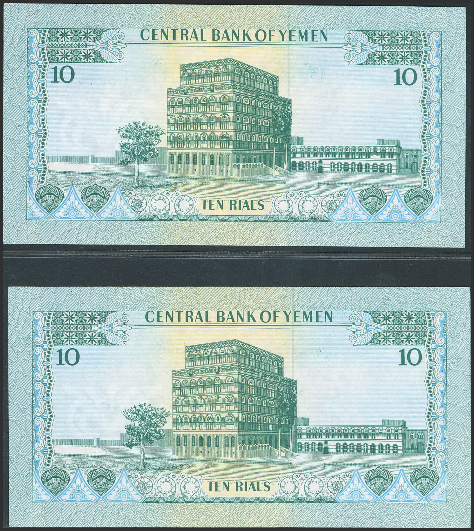 YEMEN ARAB REPUBLIC. Lot of 2 notes of 10 Rials. (1973ca). Central Bank. (Pick: 13b). Uncirculated.