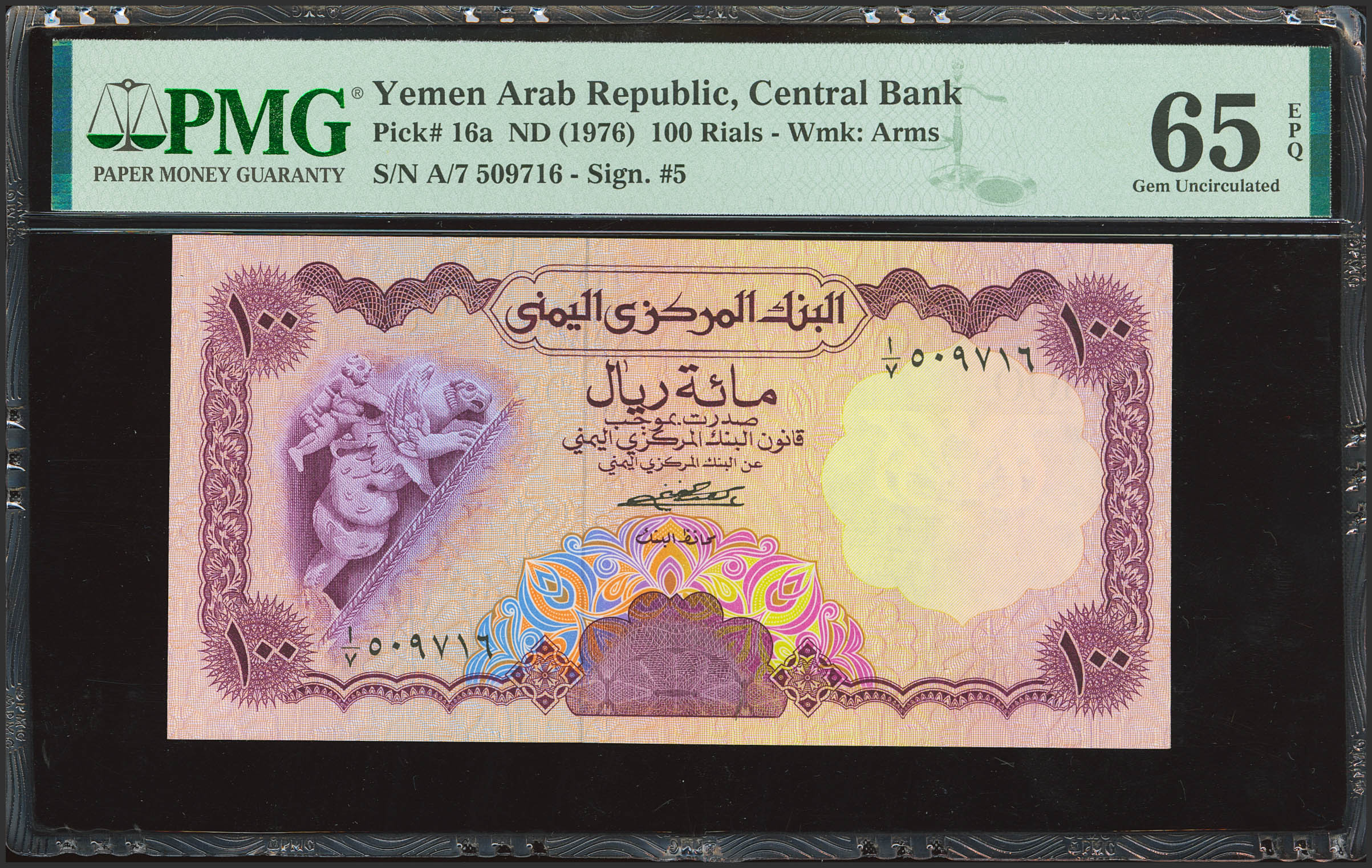 YEMEN ARAB REPUBLIC. 100 Rials. (1973ca). Central Bank. (Pick: 16a). PMG65EPQ.