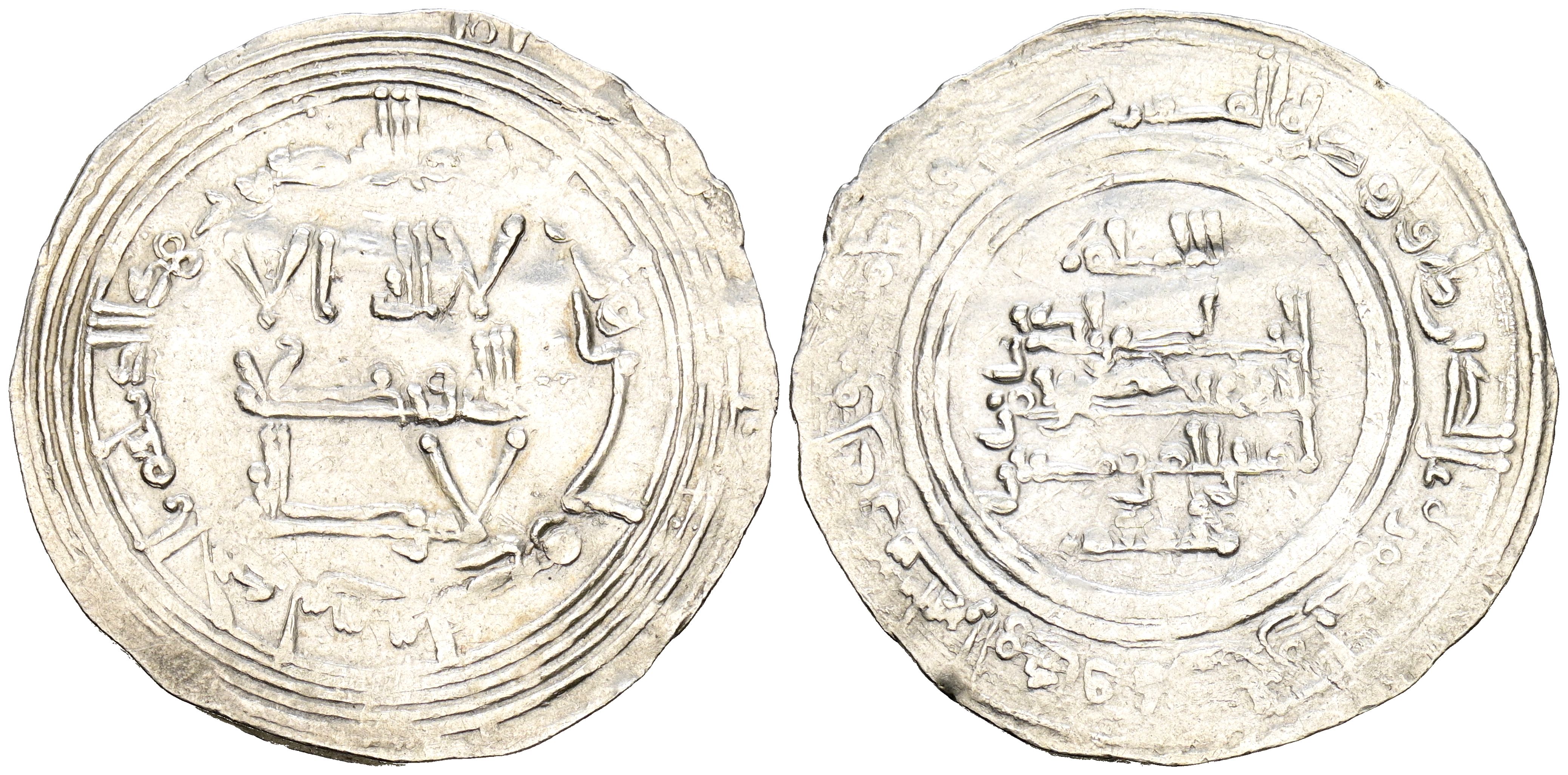 CALIFATO DE CÓRDOBA. 'Abd al-Rahman III. Dirham. (Ar. 2,76g/29mm). 334H. al-Ándalus / الاندلس. (Vives 408; Frochoso 334.16). Citando a Hišām / حشام en IA. MBC. Módulo grande. Escaso y atractivo ejemplar.