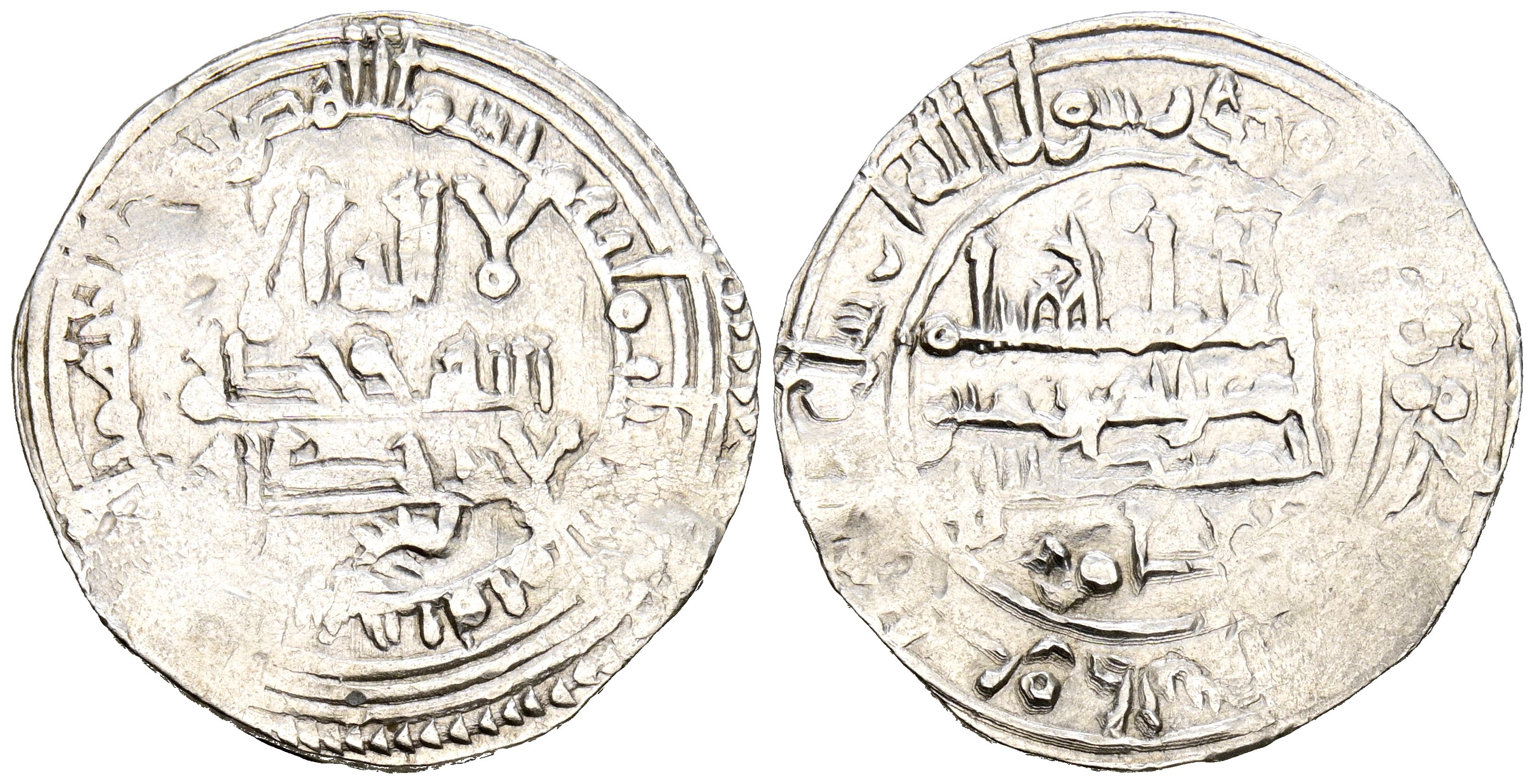 CALIFATO DE CÓRDOBA, Hisham II. Dirham. (Ar. 2,56g/23mm). 380H. Fas (Fez) / فاس. (Vives 606). Citando a 'Āmir / عامر en IIA. MBC+. Vanos de acuñación. Escaso e interesante ejemplar.