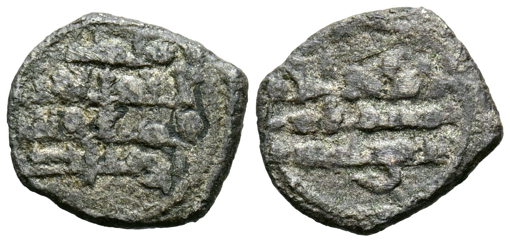 TAIFAS DE CALIFATO, SEVILLA (Abadíes). Muhammad Ibn Abbad al-Qadi (414-433H). Dirham fraccionario. (Ve. 0,63g/12mm). S/D. (Prieto y Vives 394; Francés 22, mismo ejemplar). MBC.