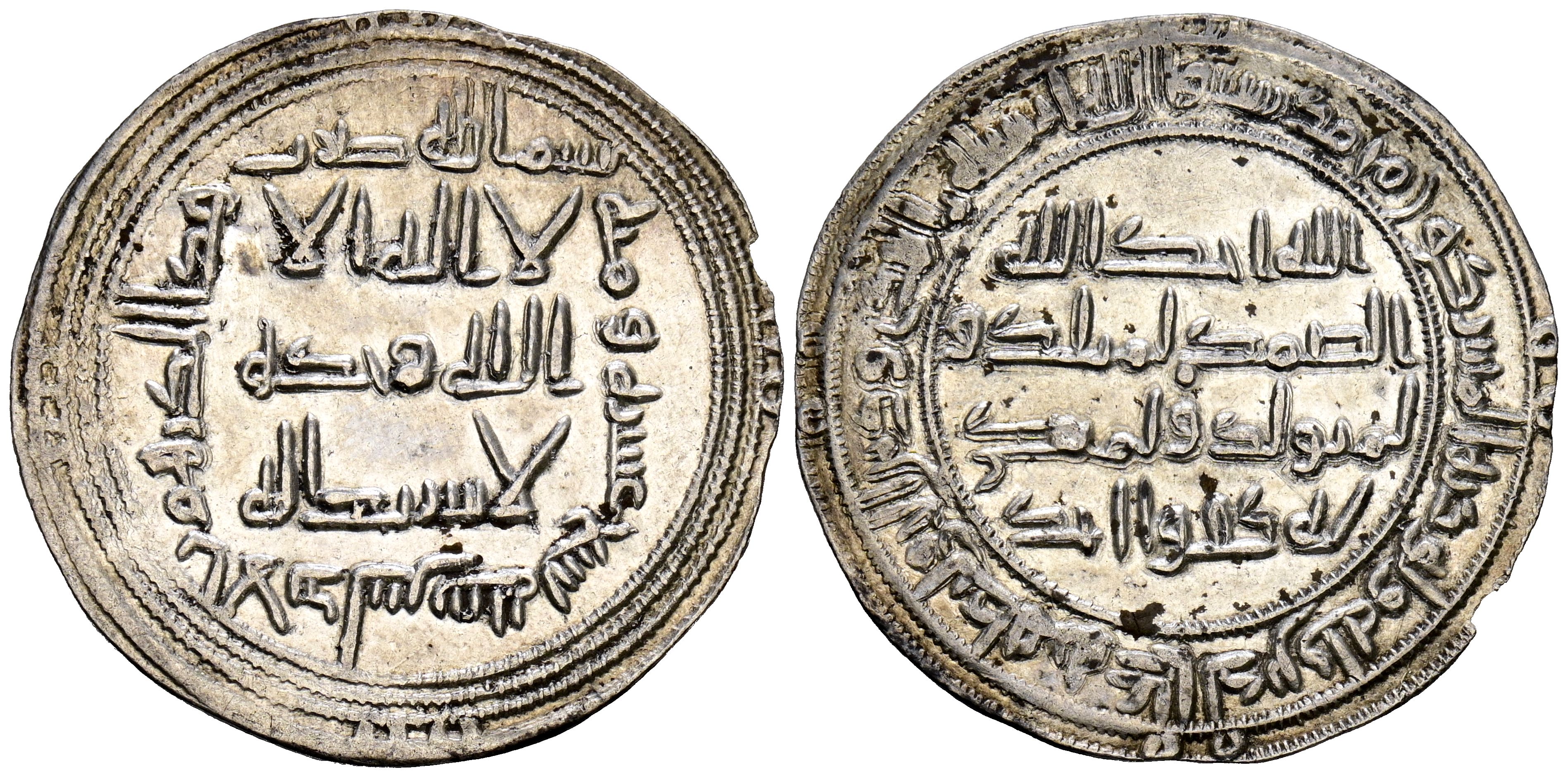 EMIRATO DEPENDIENTE DE CÓRDOBA, PERIODO DE GOBERNADORES. Dirham. (Ar. 2,94g/27mm). 119H. al-Ándalus / الاندلس. (Vives no cita; Klat 132). SC-. Brillo original. Rarísima.