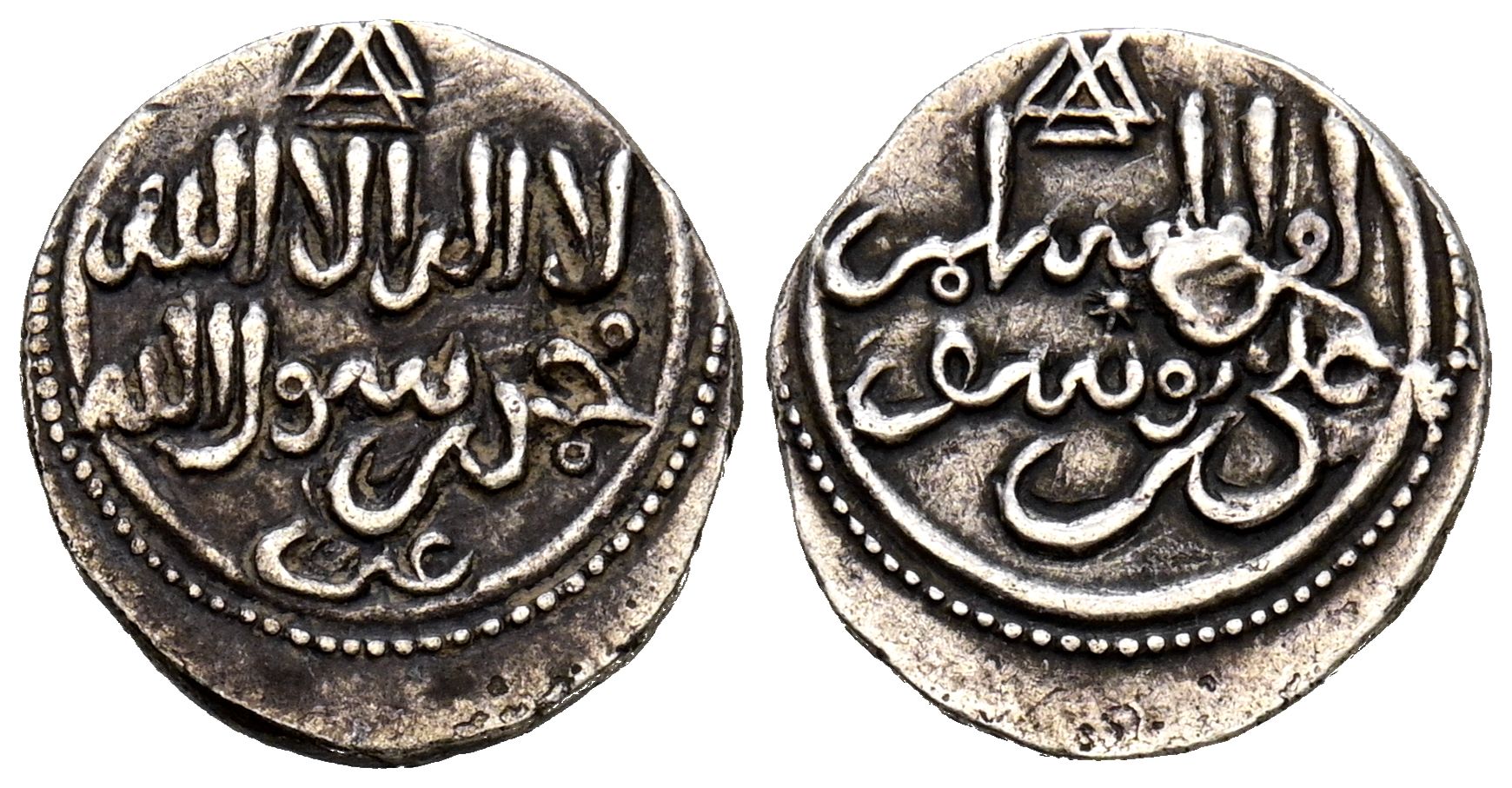 ALMORAVIDES, Ali ben Yusuf (500-537H). Quirate. (Ar. 0,92g/12mm). S/D. (Vives 1694; Benito Cb22). Anv: 'Shahadah' en dos líneas. Rev: Dividió en dos líneas, presenta a Ali con título de Amir al-Muslimín, sin mención a heredero y un interesante adorno en ambas áreas. MBC+.