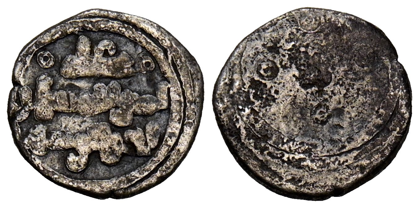 ALMORÁVIDES, Tashfin Ibn 'Ali (500-537H). 1/2 Quirate. (Ar. 0,46g/9mm). S/D. (Benito Cb45). Anv: Presenta a Ali con título amir al-Muslimin en tres líneas: ابن يوسف / امير المسلمين / علي. Rev: Anepigrafo. MBC. Escasa.