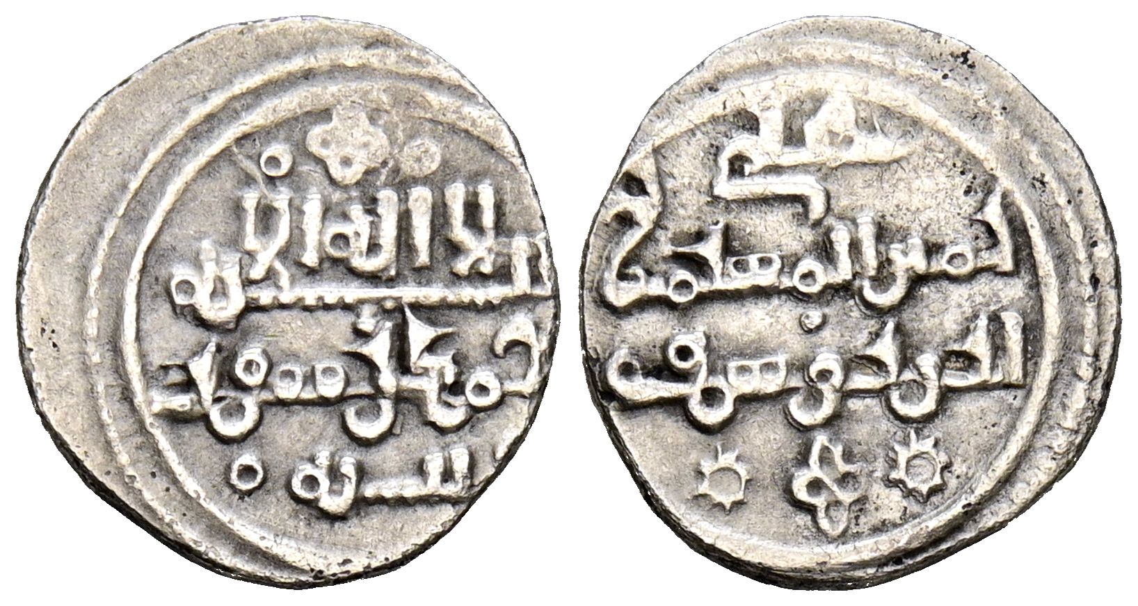 ALMORAVIDES, Ali Ibn Yusuf (500-537H). Quirate. (Ar. 0,87g/12mm). S/D. (Benito Tipo Cb, combinación de leyendas no catalogada). Anv: 'Shahadah' en cuatro líneas. Rev: Presenta a Alí con títulos de Amir al-Muslimin. MBC+. Interesante variante con atractiva decoración.