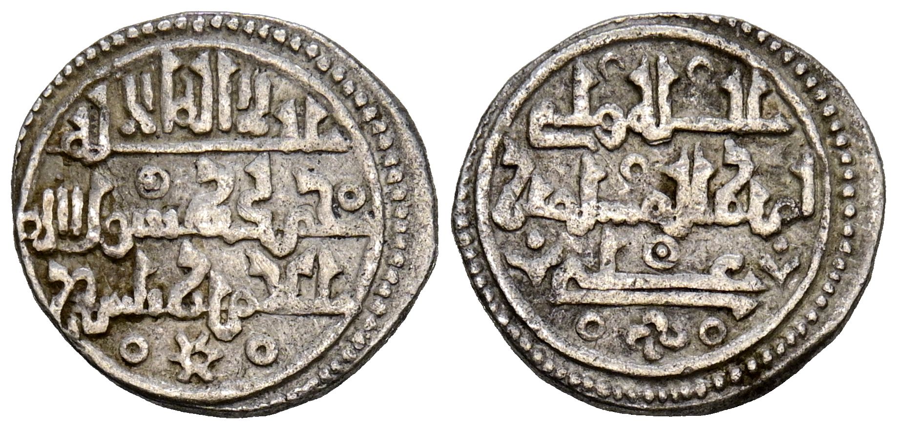 ALMORAVIDES, 'Ali ben Yusuf y el emir Tahsfin (533-537H). Quirate. (Ar. 0,96/13mm). (Vives 1820; Hazard 997; Benito Ch13). Anv: 'Shahada' en tres líneas y mención al heredero. Rev: Presenta a Ali con título de Amir al-Muslimin, arriba la expresión: A llah Wali / الله ولي (Dios ''es el'' guardián). MBC+. Precioso ejemplar.