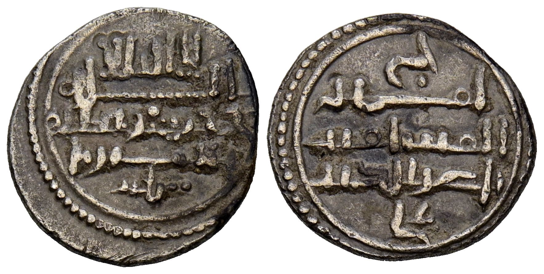 ALMORÁVIDES, Ali ibn Yusuf y el emir Tashfin (533-537H). Quirate. (Ar. 0,93g/12mm). (Vives 1827; Hazard 1004; Benito Cj7). Anv: 'Shahada' en tres líneas, debajo mención al heredero en dos: تاشفين/الامير. Rev: Presenta a Ali con títulos de Amir al-Mu slimin y Nasir al-Din. MBC+.
