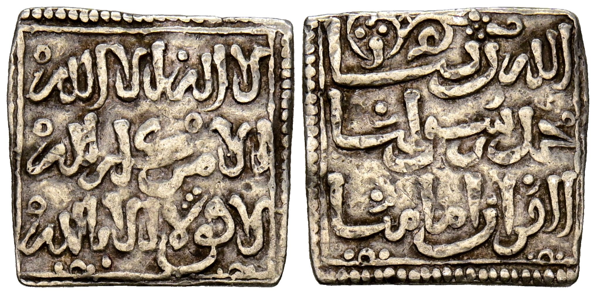 ANTI-ALMOHADES-MERINÍES, Anónima. Dirham. (Ar. 0,89g/14mm). S/D. (Hohertz 835; Medina 205). En la última línea de la IIA aparece en lugar de Al-Mahdi, la mención al Corán: القران امامنا ('El Corán es nuestro Iman'). MBC. Escasa.