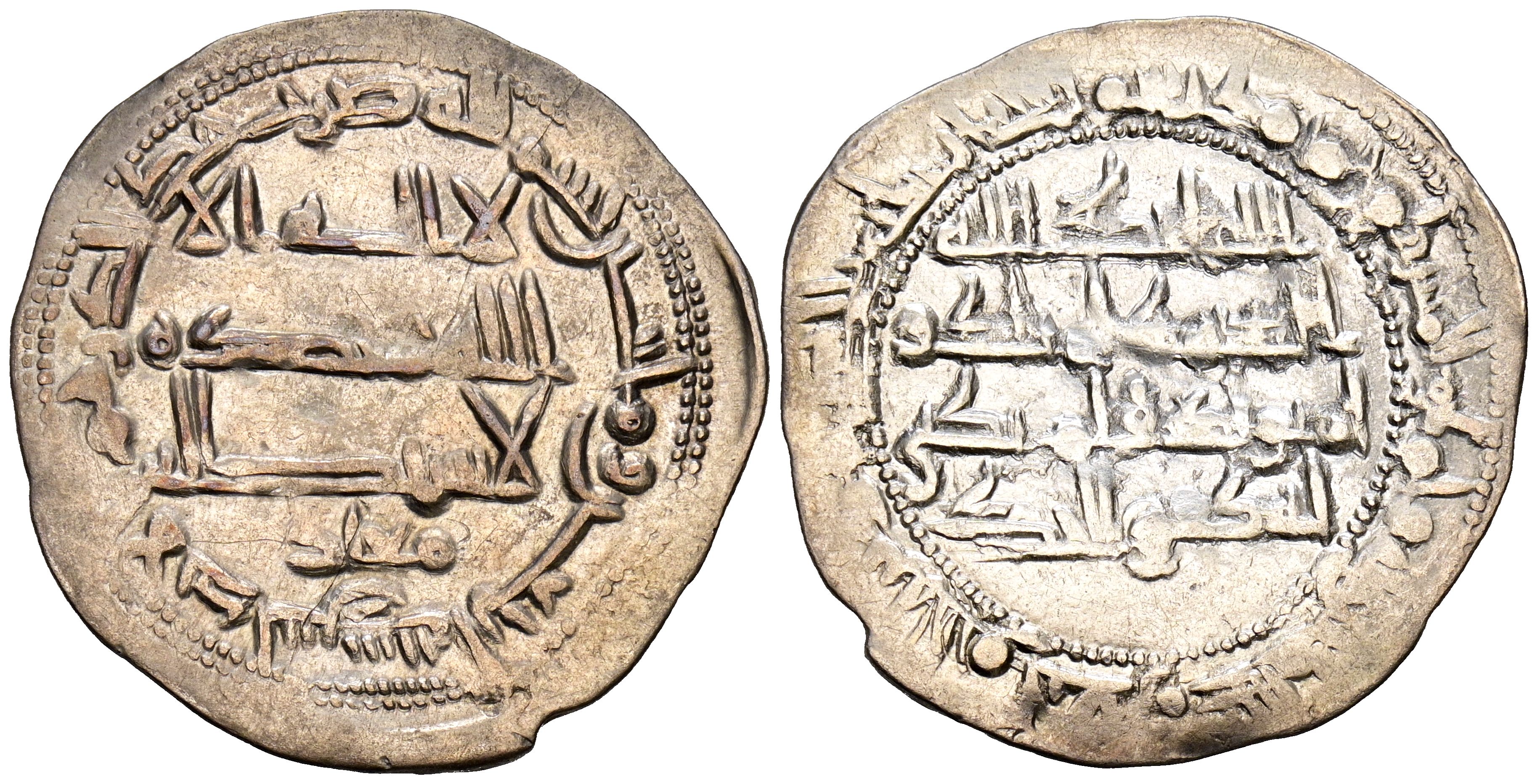 EMIRATO INDEPENDIENTE CÓRDOBA, Muhammad I. (Ar. 2,61g/26mm). 240H. al-Ándalus / الاندلس. (Vives 233; Frochoso 240.17). Citando a Mu'ad / معاد en IA. MBC+. Ligero tono de monetario en anverso.