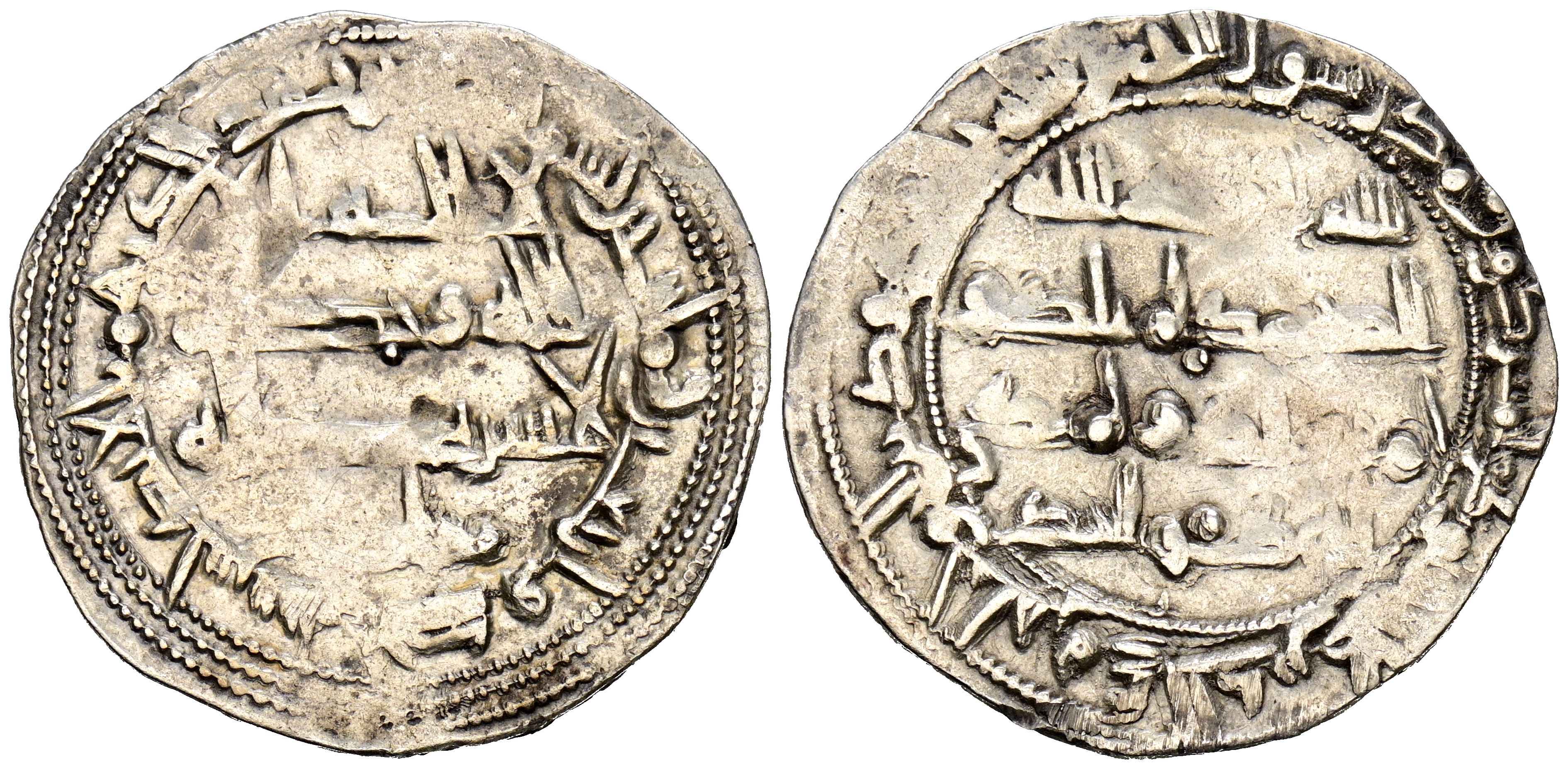 EMIRATO INDEPENDIENTE CÓRDOBA, Muhammad I. (Ar. 2,63g/27mm). 241H. al-Ándalus / الاندلس. (Vives 240; Frochoso 241.7). Citando a Mu'ad / معاد en IA. MBC. Vanos.