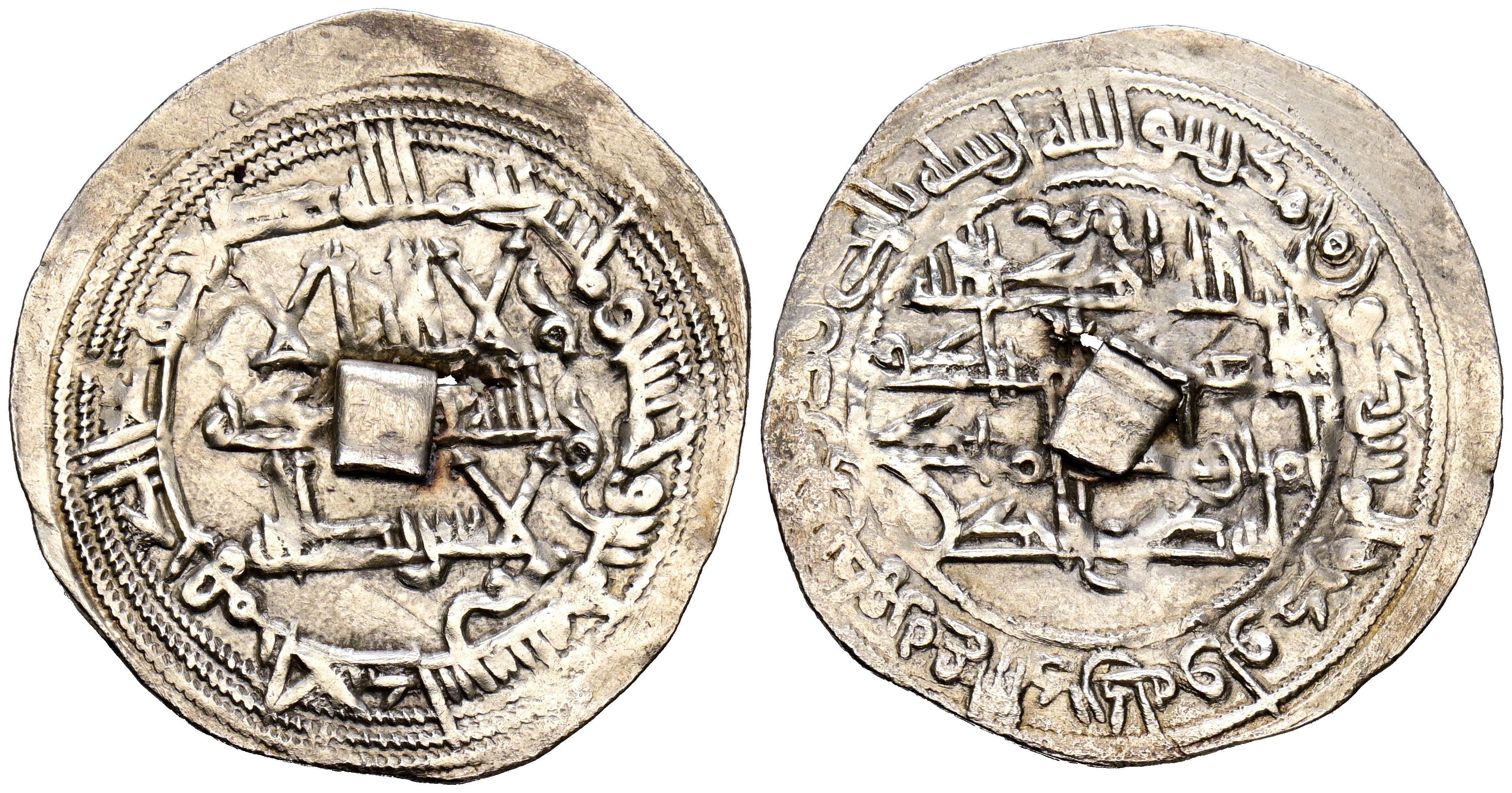 EMIRATO INDEPENDIENTE DE CÓRDOBA, Muhammad I. Dirham. (Ar. 2,78g/30mm). 255H. al-Ándalus / الاندلس. (Vives 271; Frochoso 255.16). MBC+. Remache añadido de peso.