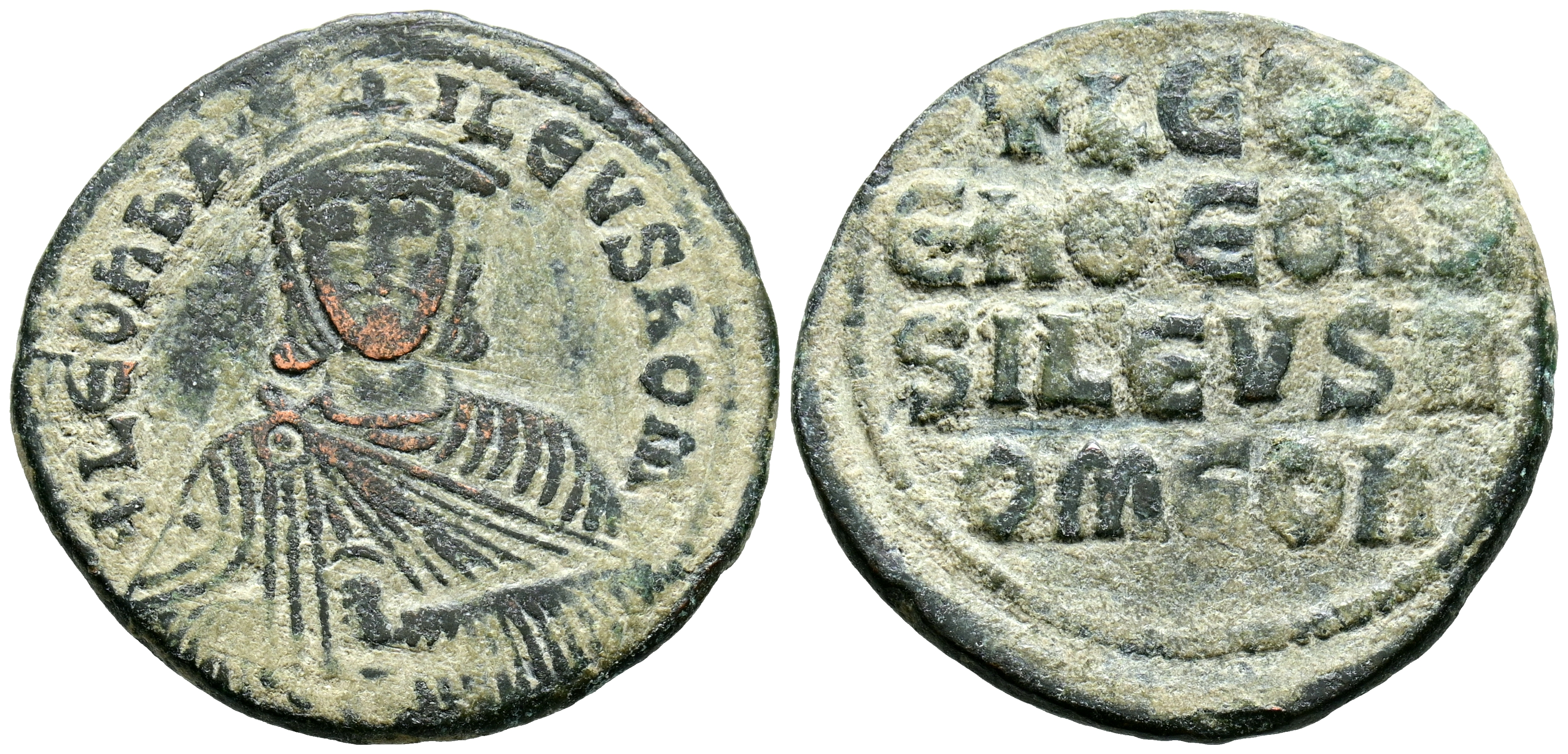 LEÓN VI. Follis. (Ae. 5,97g/26mm). 886-912 d.C. Constantinopla. (Seaby 163). Anv: Busto coronado y drapeado de León VI de frente portando akakia, alrededor leyenda: LEON BASILEVS ROM. Rev: Leyenda en cuatro líneas leyenda: LEON/En TEO bA/SILEVS R/OMEOn. MBC.