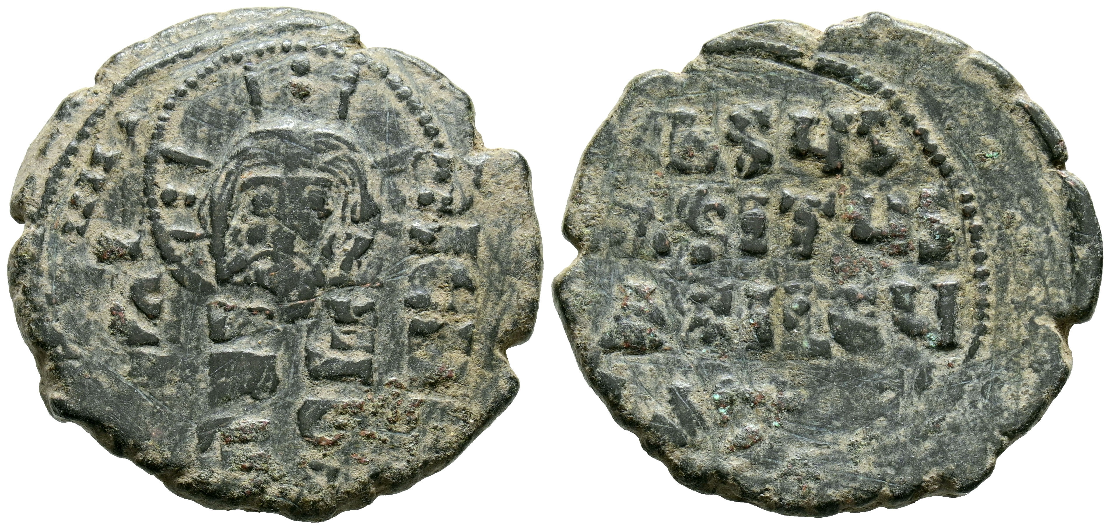 ANONIMO, tiempos de Basilio II y Constantino VIII. Follis. (Ae. 7,79g/27mm). 976-1025 d.C. Constantinopla. (Seaby 1813). Anv: Busto de Cristo de frente sosteniendo Evangelio, en campo: IC - XC, alrededor: EMMA-NOVHΛ . Rev: IhSϤS / XRISTϤS / bASILЄϤ / bASILЄ. MBC-. Reacuñación en anverso.