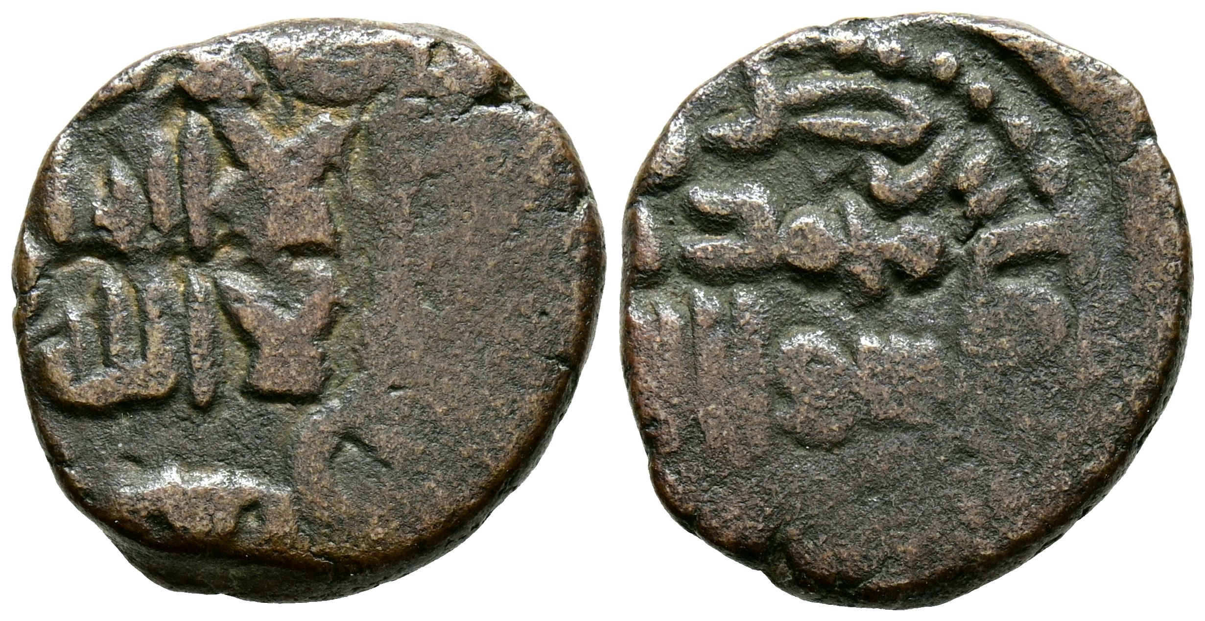 EMIRATO DEPENDIENTE DE CÓRDOBA, PERIODO DE GOBERNADORES. Anónimo. Felús. (Ae. 3,64g/18mm). 108H. al-Ándalus / الاندلس. (Frochoso XIX-b). MBC-. Acuñación desplazada. Escasa.