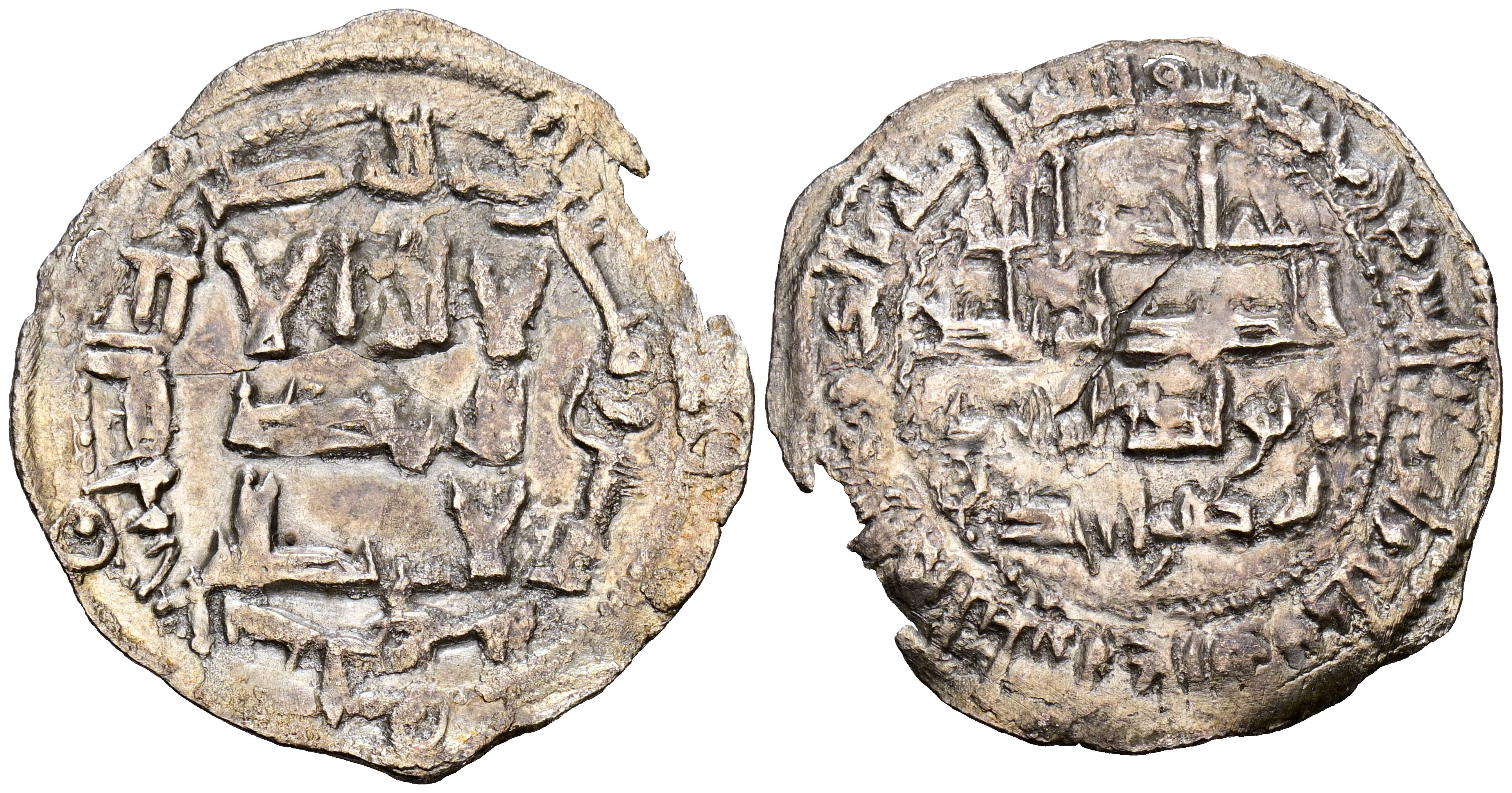 EMIRATO DEPENDIENTE DE CÓRDOBA. Al-Hakam I. Dirham. (Ar. 2,16g/28mm). 205H. al-Ándalus / الاندلس. (Vives 118; Frochoso 205.1). MBC. Pequeña falta en cospel.