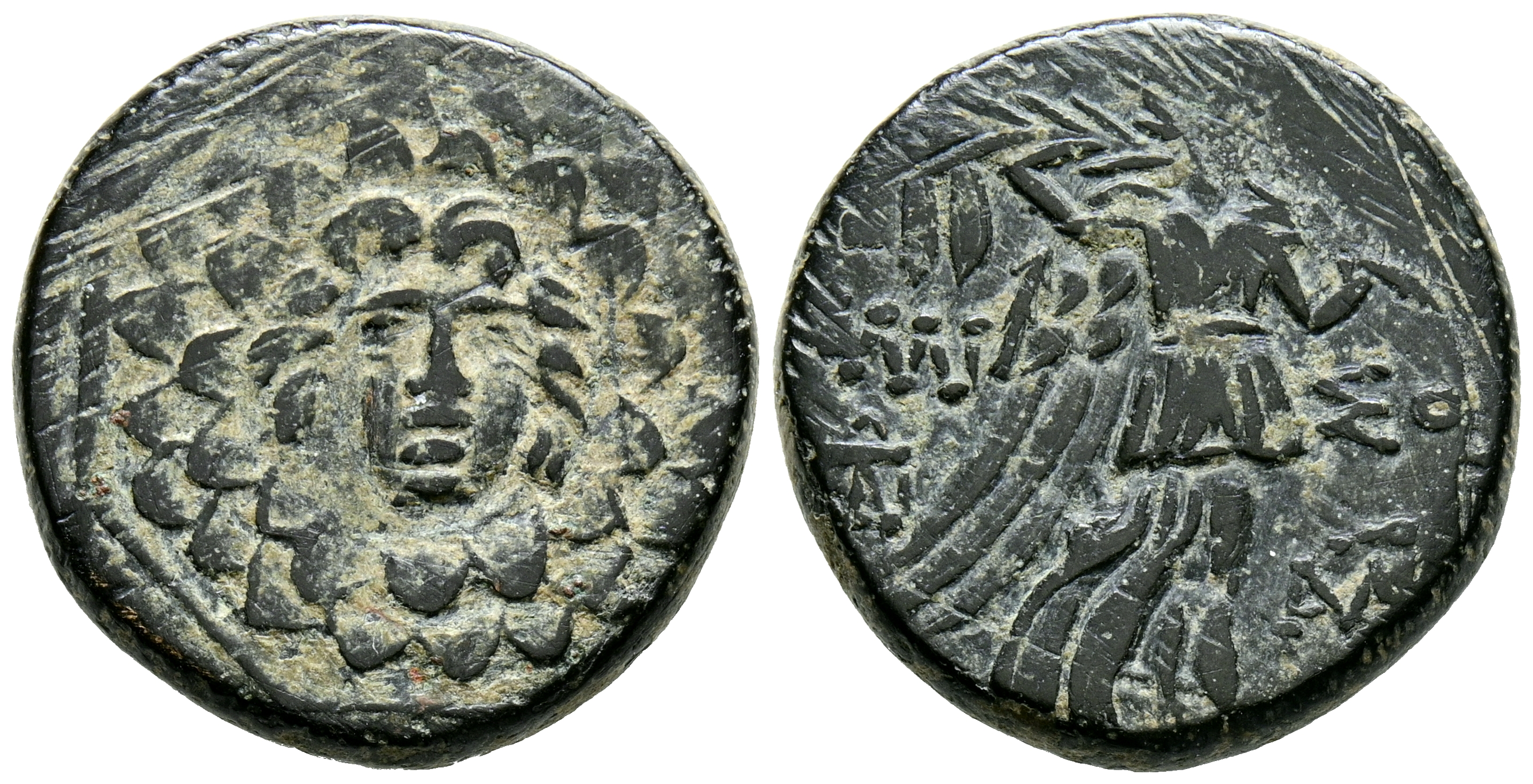 PONTOS, Amisos. Ae20. (Ae. 7,35g/20mm). 85-65 a.C. (HGC 7, 242). Anv: Aegis de frente. Rev: Nike avanzando a derecha con palma, entre leyenda griega: AΜΙΣΟΥ. MBC+.