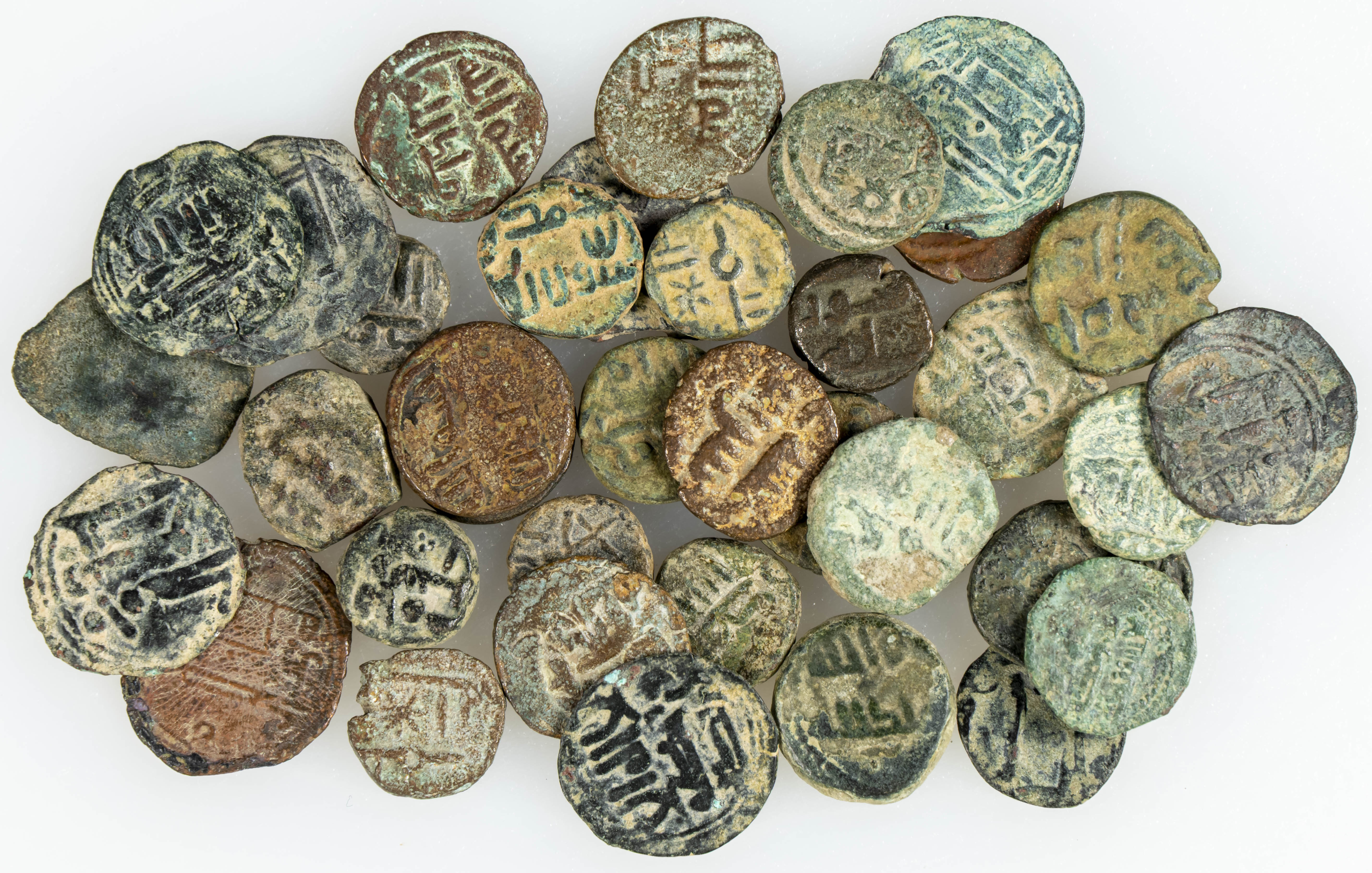 PERIODO DE GOBERNADORES Y EMIRATO INDEPENDIENTE DE CÓRDOBA. Interesantísimo conjunto formado por 36 féluses variados de los tipos; Frochoso II-e; II-d; IX-a; X-a; tipo I. y tipo 1-2 (al menos 5 variantes de estilo epigráfico). A destacar una gran var iedad y algunas con sobre acuñación. Diferentes módulos, medidas y estados de conservación. A EXAMINAR.