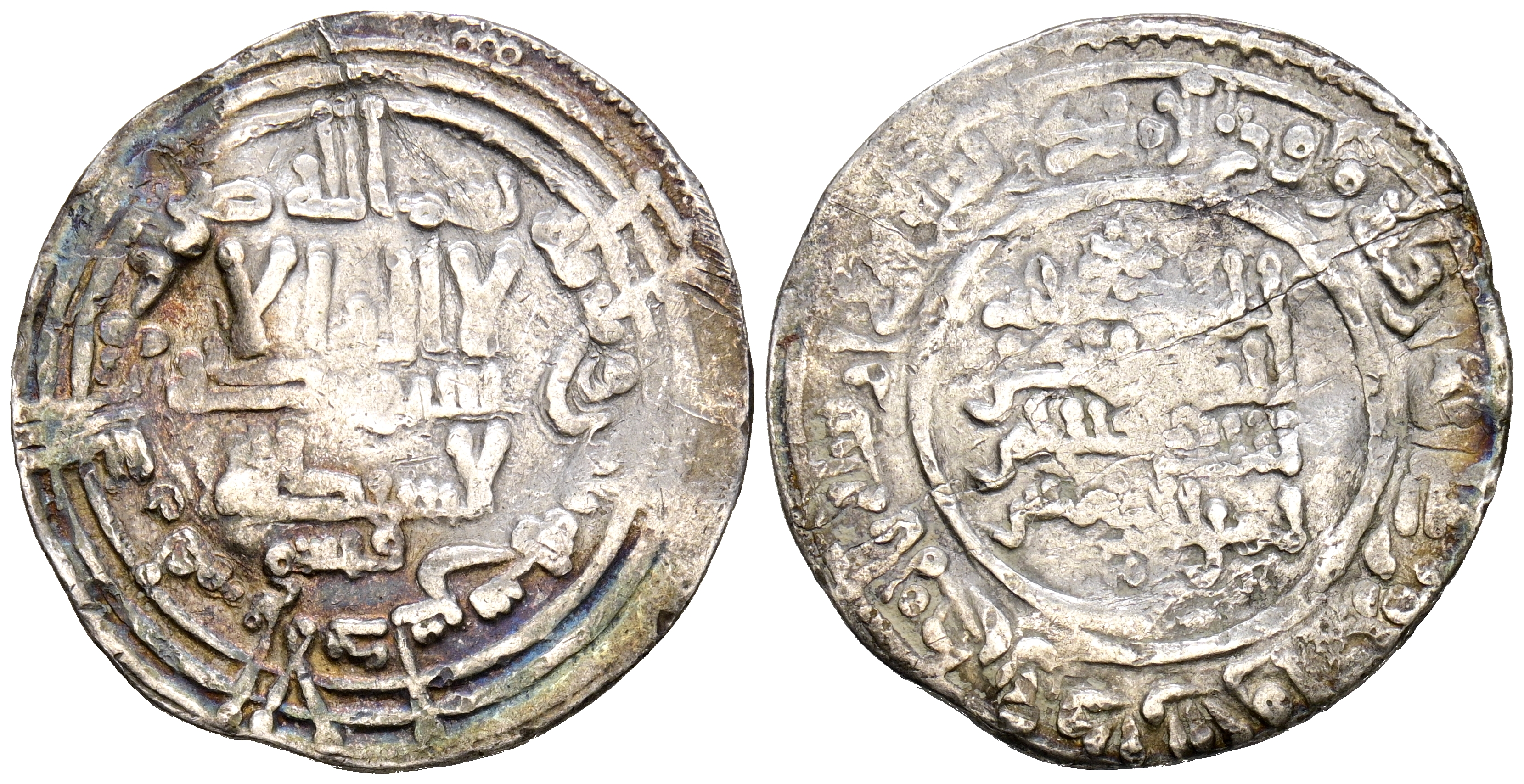 CALIFATO DE CÓRDOBA. 'Abd al-Rahman III. Dirham. (Ar. 2,86g/24mm). 330H. al-Ándalus / الاندلس. (Vives 396; Frochoso 330.8). Citando a Qāsim / قاسم en IA. MBC.