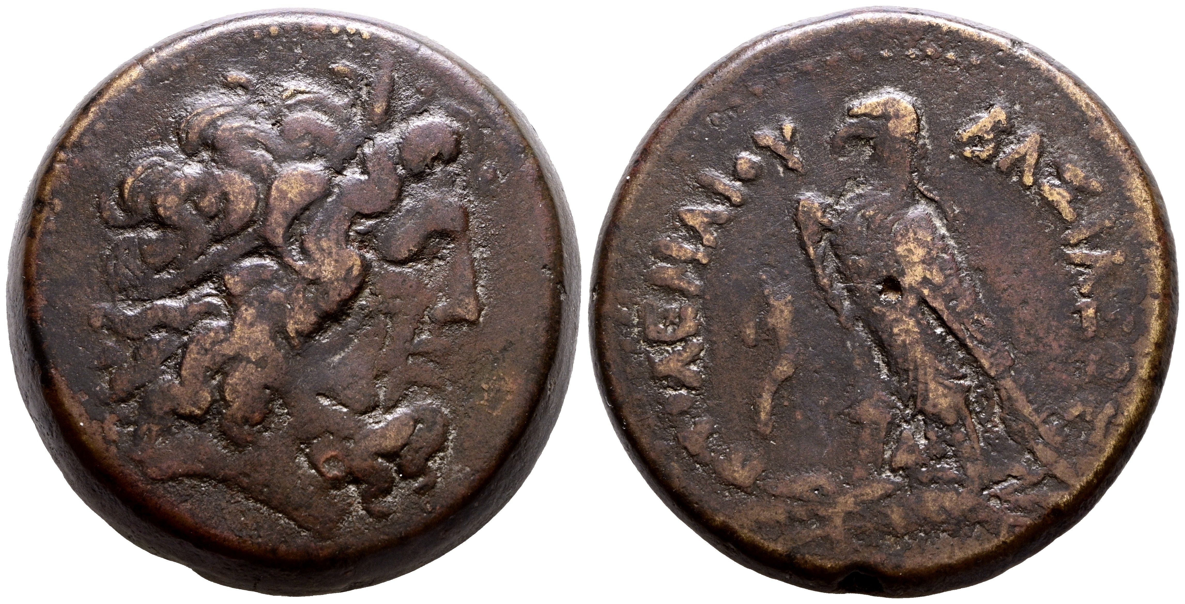 REINO PTOLEMAICO, Ptolomeo IV Philipator. Ae42. (Ae. 66,86g/42mm). 221-204 a.C. (Svoronos 1125; SNG Copenhaguen 199). Anv: Cabeza laureada de Zeus a derecha. Rev: Aguila sobre rayo a izquierda, delante cornucopia, entre las patas AI, alrededor leyend a griega. MBC/MBC-.