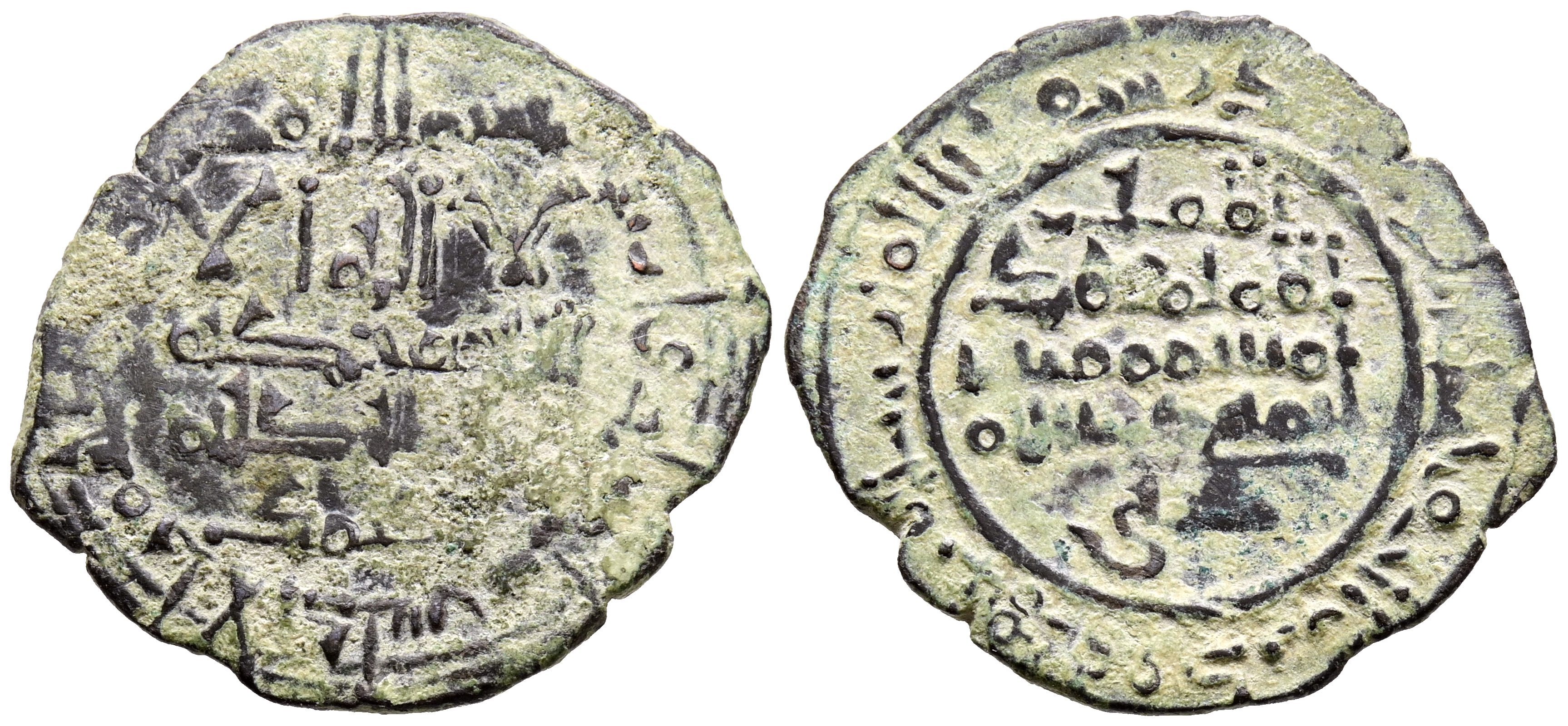 TAIFAS DEL CALIFATO, MÁLAGA (Hammudies). Muhammad Ibn Idris, Al-Mahdi. Dirham. (Ve. 2,78g/25mm). 443H. al-Ándalus / الاندلس. (Vives 864; Prieto 104b; Ariza Mu5.1). Citando a محمد (Muhammad) en AI. y al يحيى / الامار (al-'Amir Yahya) en IIA. MBC.