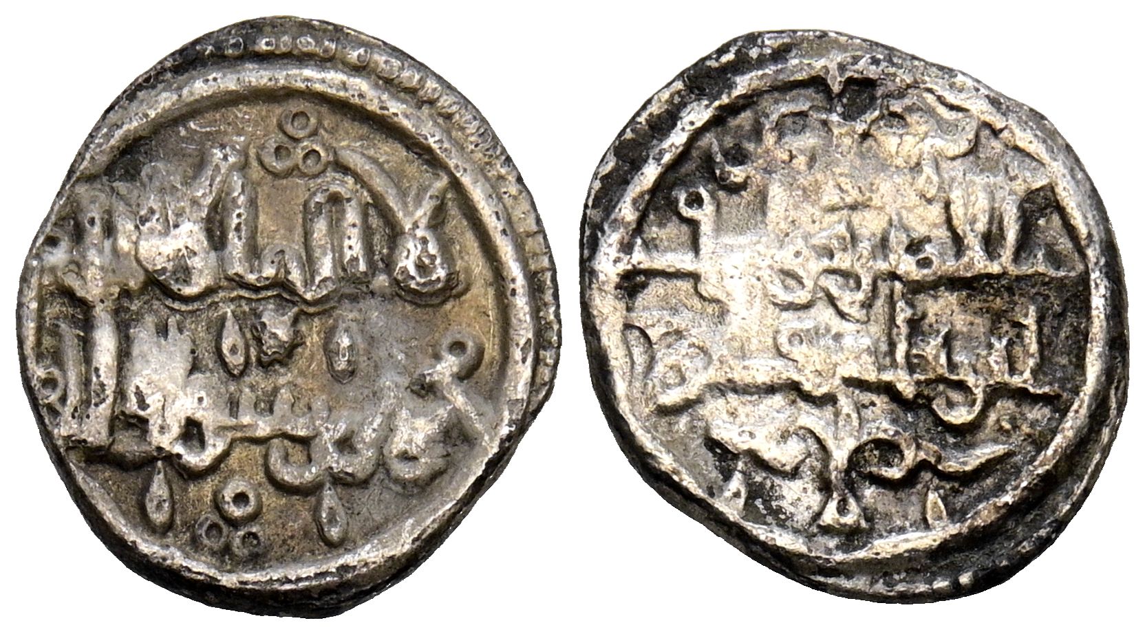 ALMORAVIDES, Yusuf ben Tashfin (480-500H). Quirate. (Ar. 0,92g/12mm). S/D. (Vives 1538; Hazard 893; Benito Ba5). Leyendas divididas en dos líneas en ambas áreas sin mención de heredero (480-497H). MBC+/MBC. Limpiada. Escaso y atractivo ejemplar con u na variante de escritura bellísima en anverso.