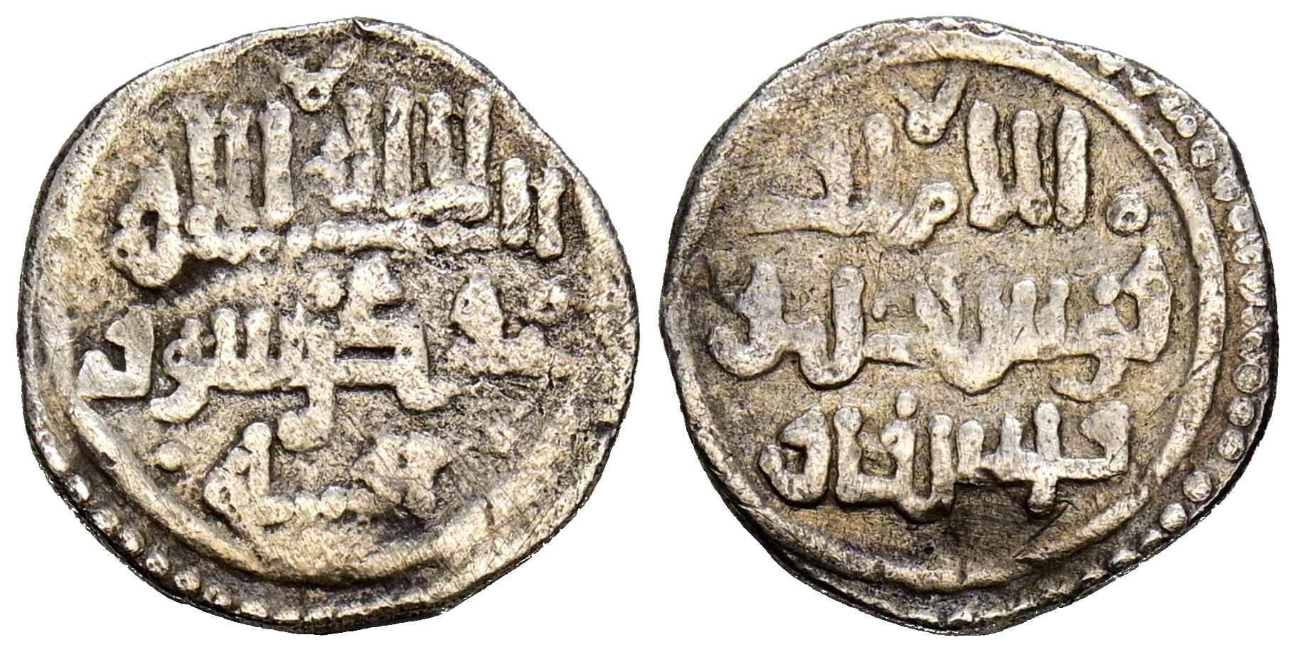 ALMORAVIDES, Yusuf ben Tashfin (480-500H). Quirate. (Ar. 0,92g/12mm). S/D. (Vives 1535; Benito Ba12). Anv: 'Shahada' en cuatro líneas. Rev: Presenta a Yusuf sin títulos ni heredero. MBC. Escasa.