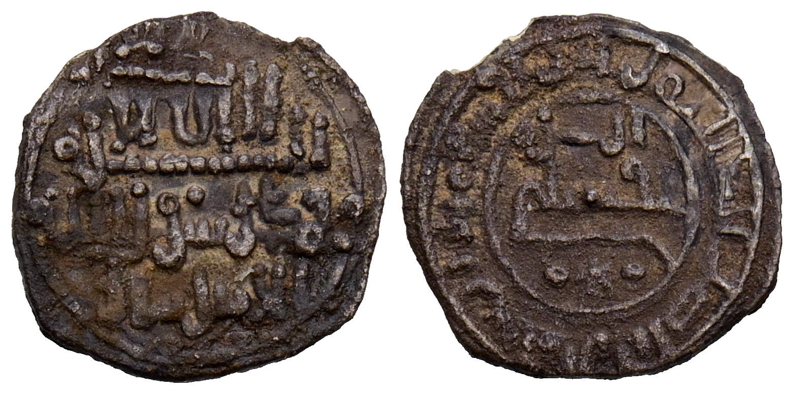 ALMORAVIDES. Ali ben Yusuf y el Emir Sir (522-533H.). Quirate. (Ar. 0,40g/11mm). S/D. (Vives no cita; Eustache 341A (lectura parcial); Benito Cf12). Anv: Shahada' en tres líneas y mención al heredero: الامير سير. Rev: En el centro: الله/ حسبي (Dios m e basta), alrededor se presenta a Ali con los títulos de Amir al-Muslimin y Nasir al-Din. MBC-. Muy raro.