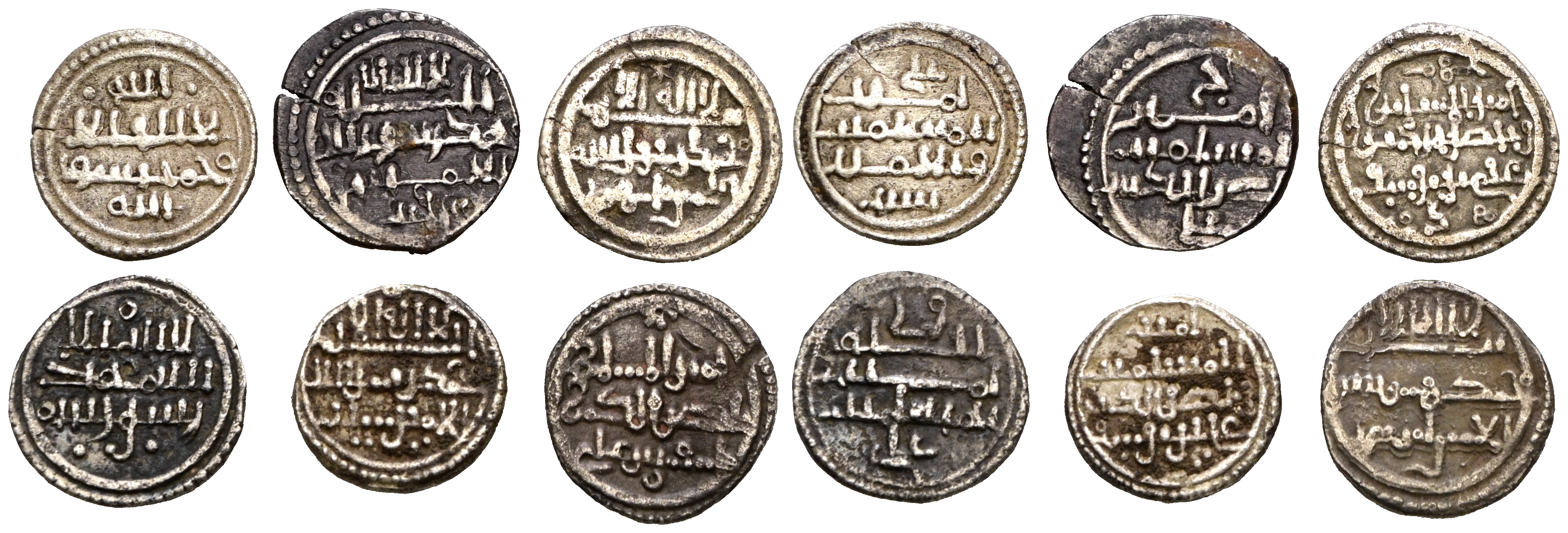 ALMORÁVIDES. Interesante conjunto formado por 6 Quirates de Ali Ibn Yusuf y Tashfin Ibn Ali. Todos de diferente tipo. Diversas medidas, variantes y estados de conservación. A EXAMINAR.